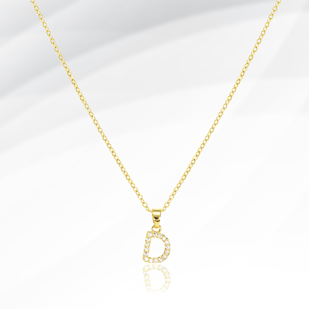 -N- Stainless Steel CZ Stone Paved Initial Monogram Pendant Necklace