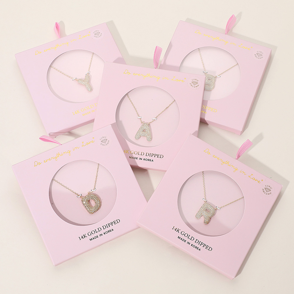 -Y- Secret Box _ 14K Gold Dipped CZ Initial Monogram Pendant Necklace