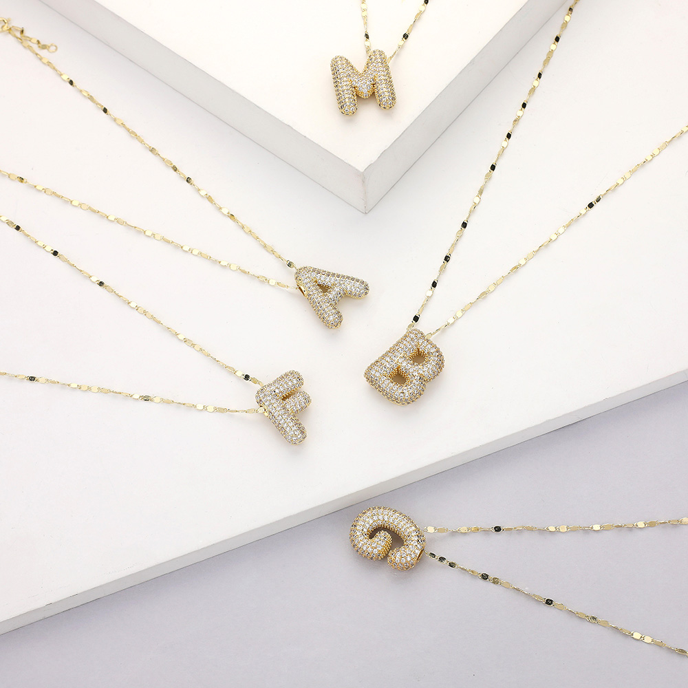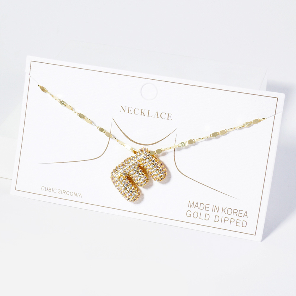 -B- Gold Dipped CZ Stone Paved Initial Monogram Pendant Necklace
