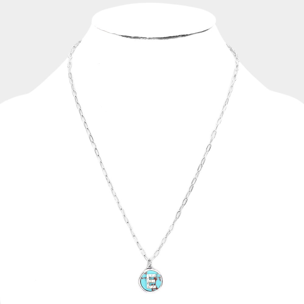 -E- White Gold Dipped Initial Monogram Pendant Necklace