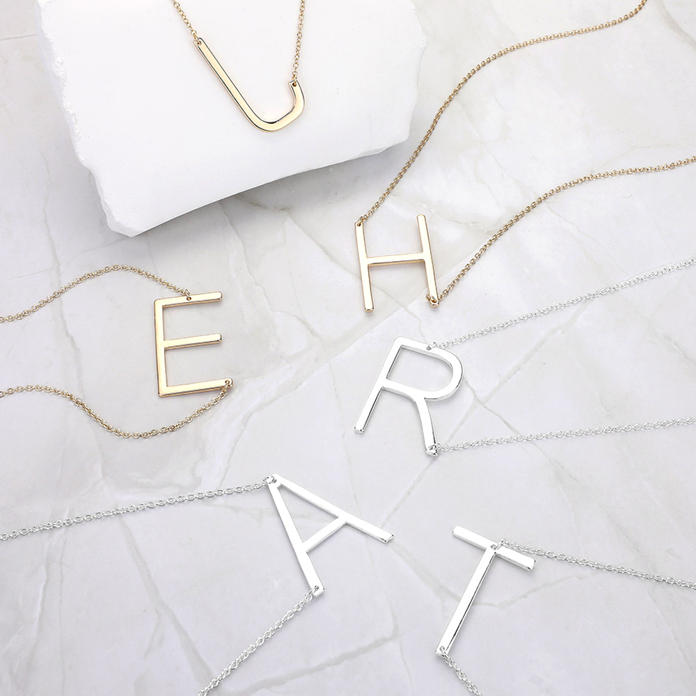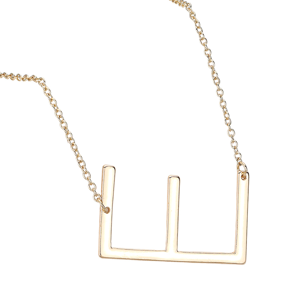 -W- Brass Metal Rectangle Initial Monogram Pendant Necklace
