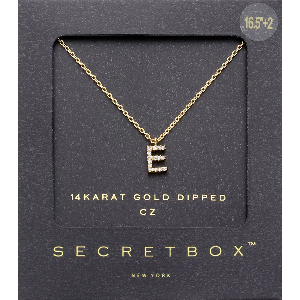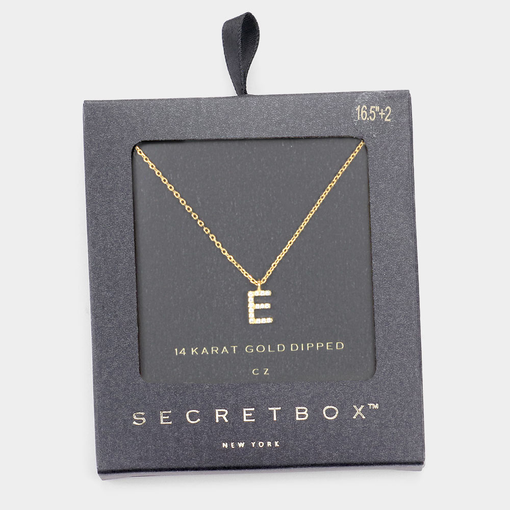 -X- Secret Box _ 14K Gold Dipped CZ Initial Monogram Pendant Necklace