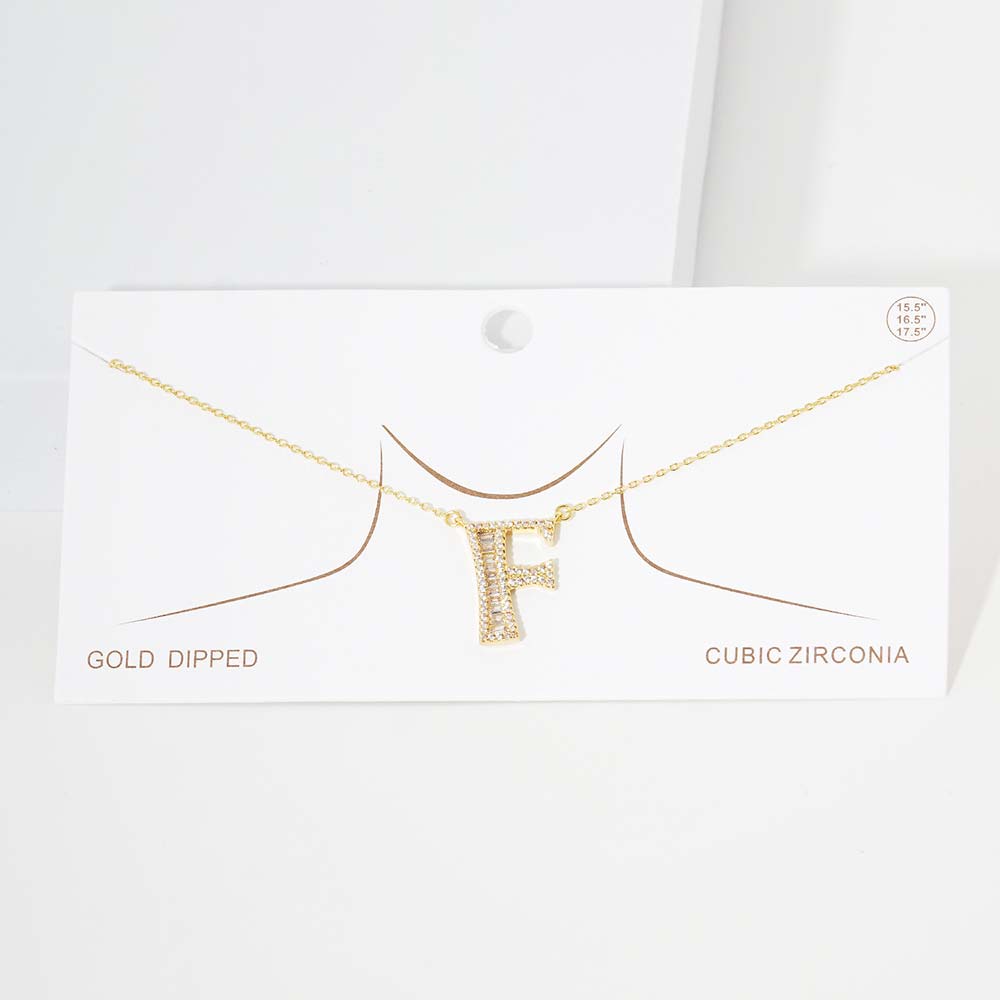 L Brass Metal Cubic Zirconia Initial Monogram Pendant Necklace