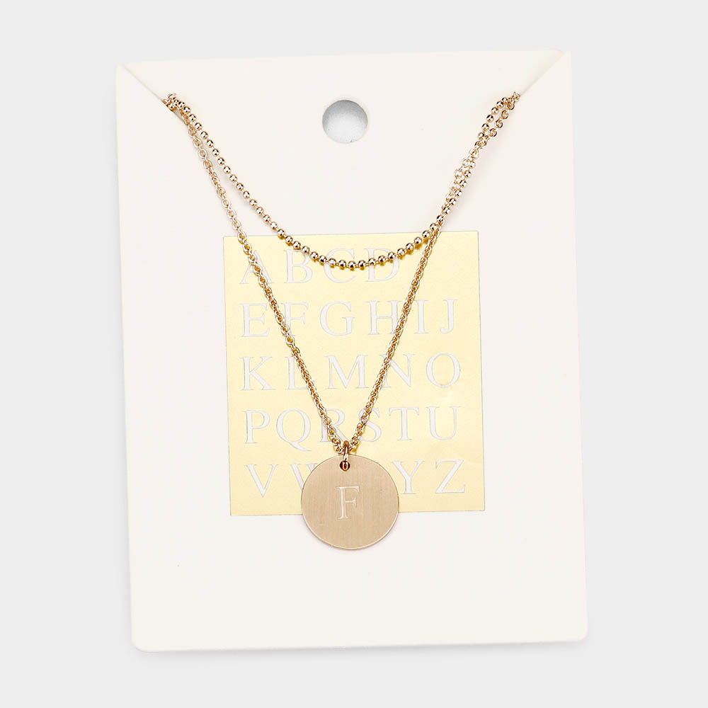 -T- Brass Metal Rectangle Initial Monogram Pendant Necklace