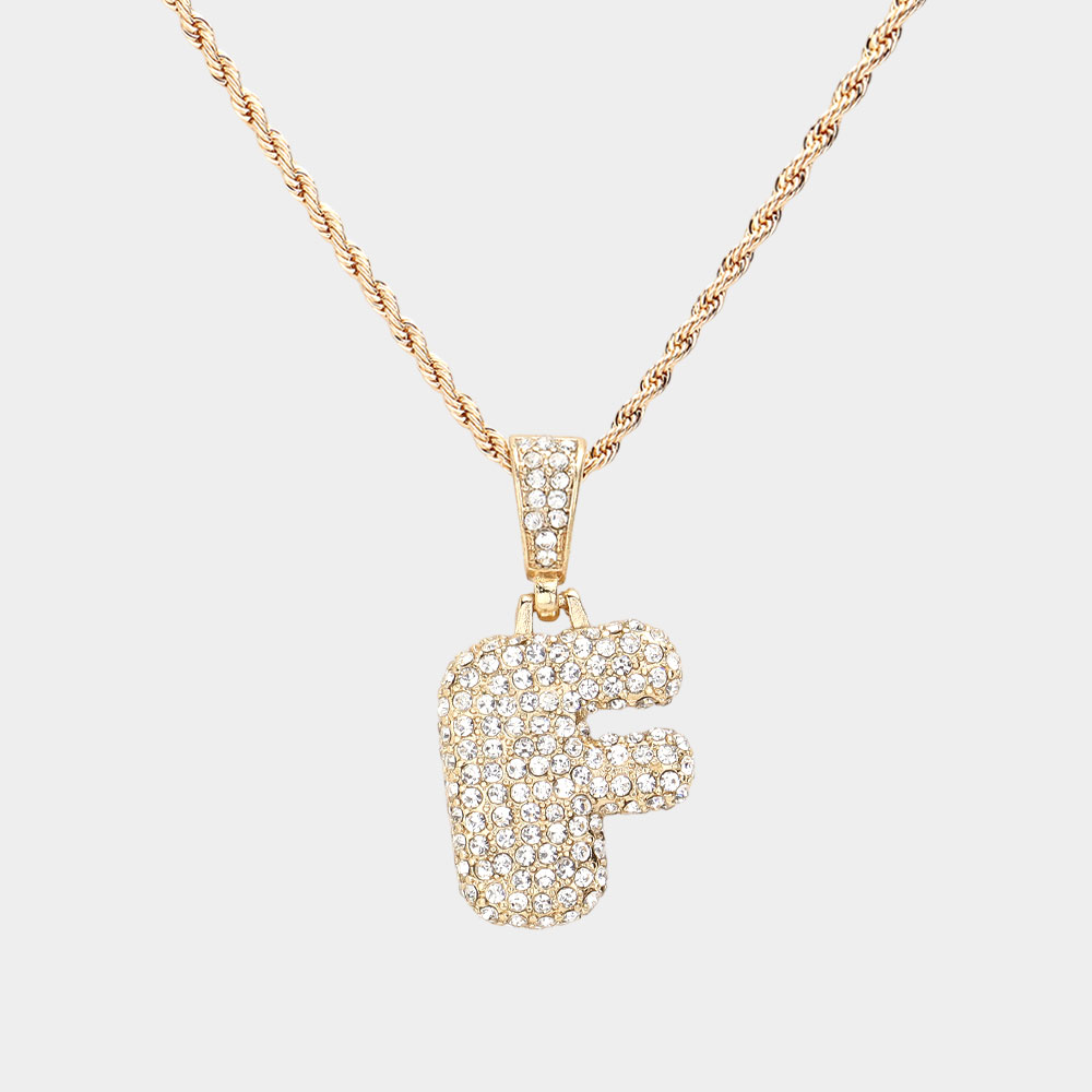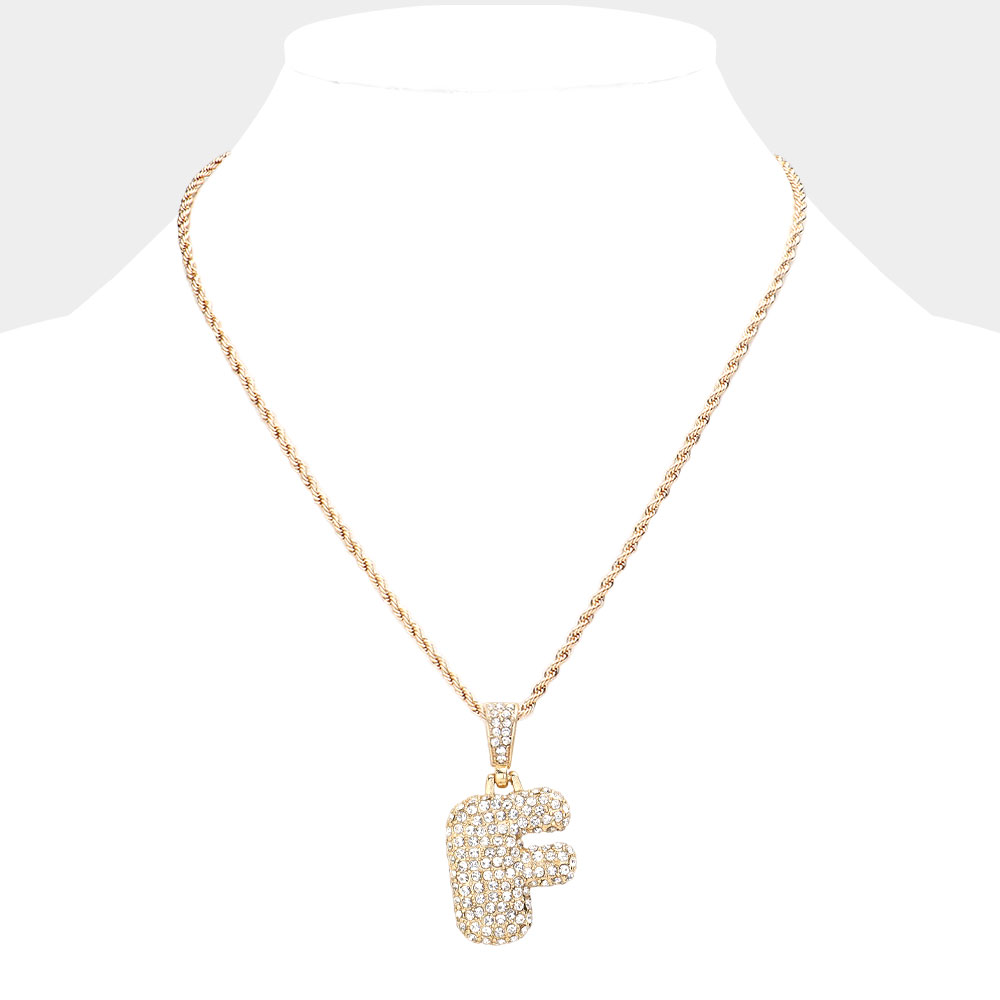 -F- Rhinestone Initial Monogram Pendant Brass Chain Necklace