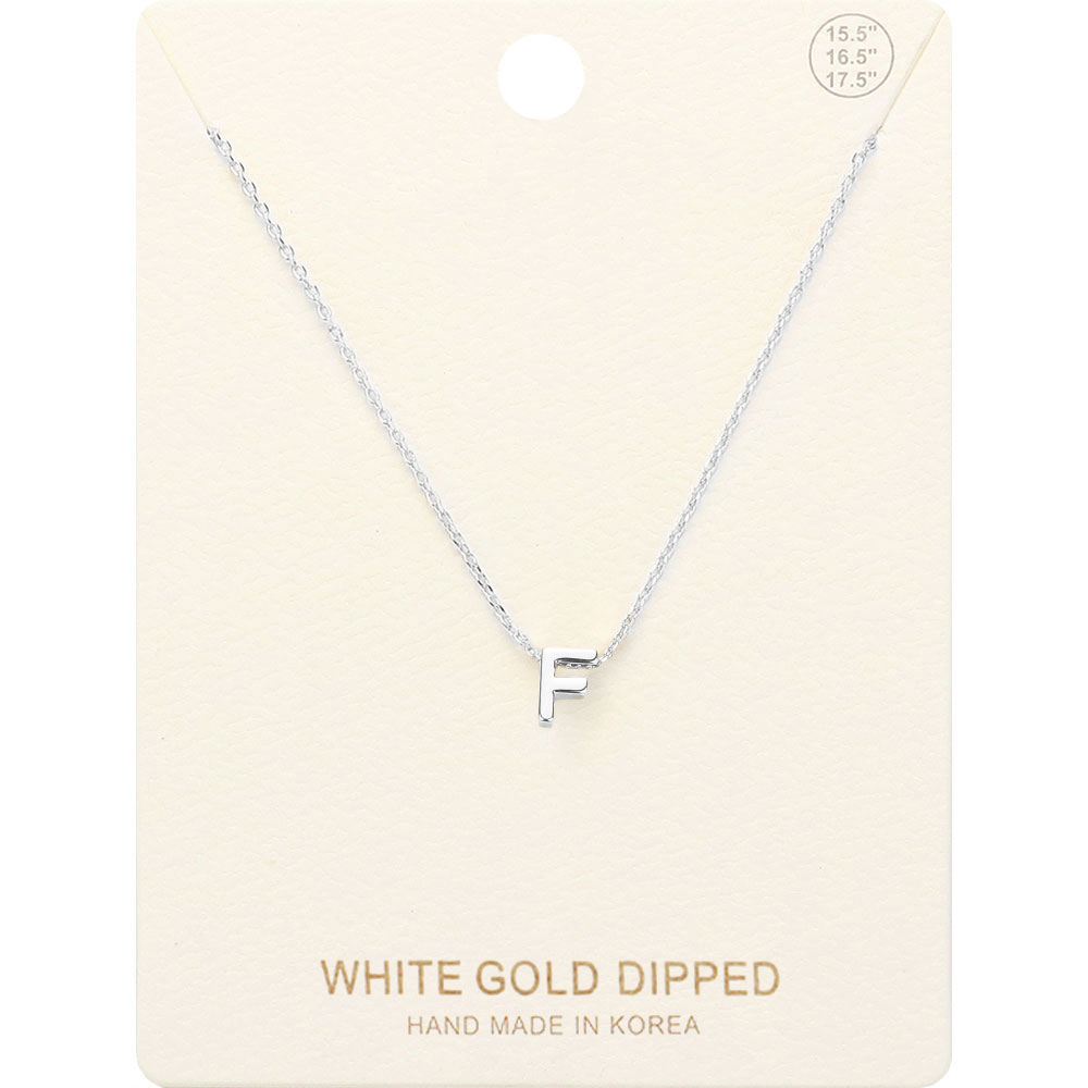 -F- White Gold Dipped Initial Monogram Metal Pendant Necklace