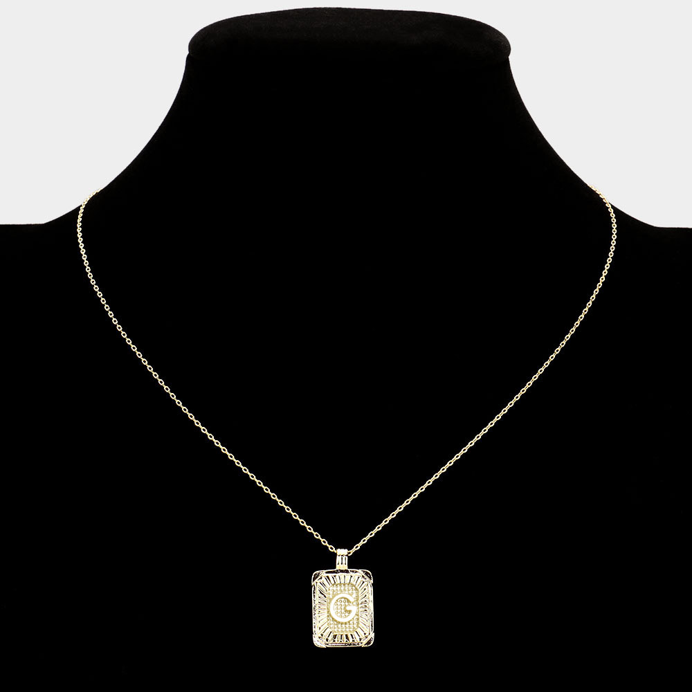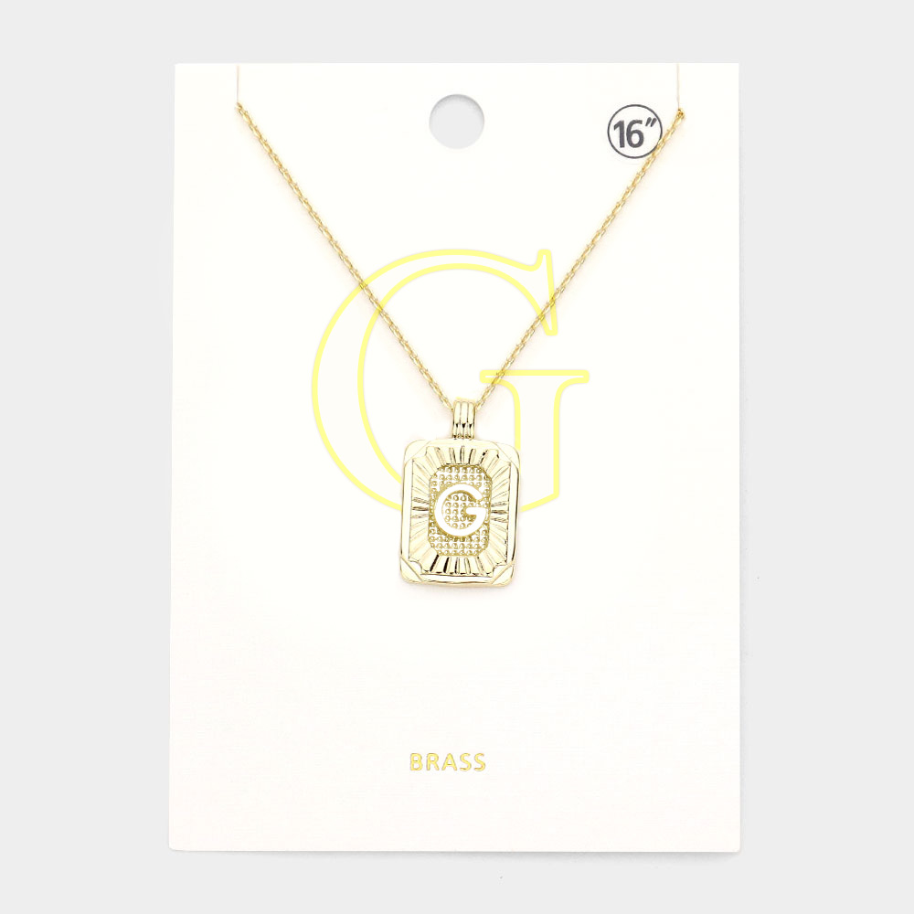 -Q- Brass Metal Rectangle Initial Monogram Pendant Necklace