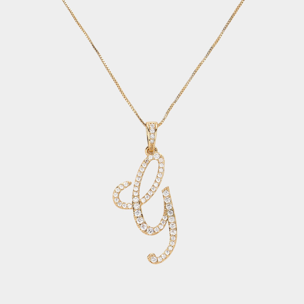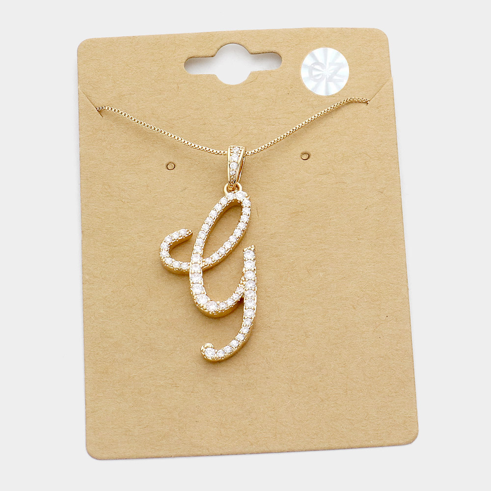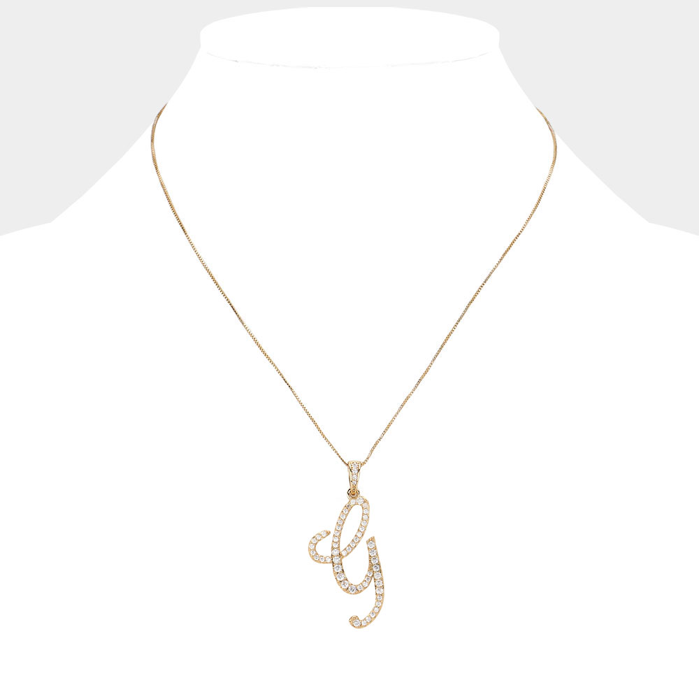 H Brass Metal Cubic Zirconia Initial Monogram Pendant Necklace