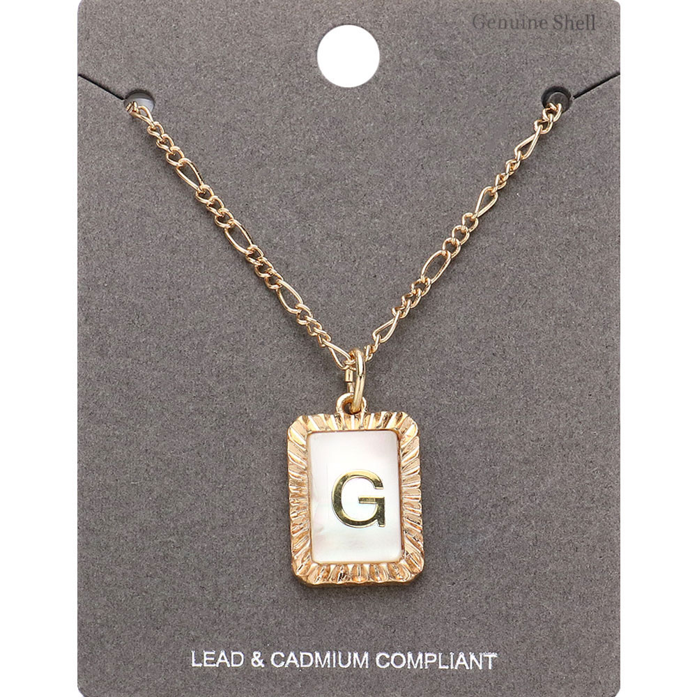 -G- Initial Monogram Genuine Shell Rectangle Pendant Necklace