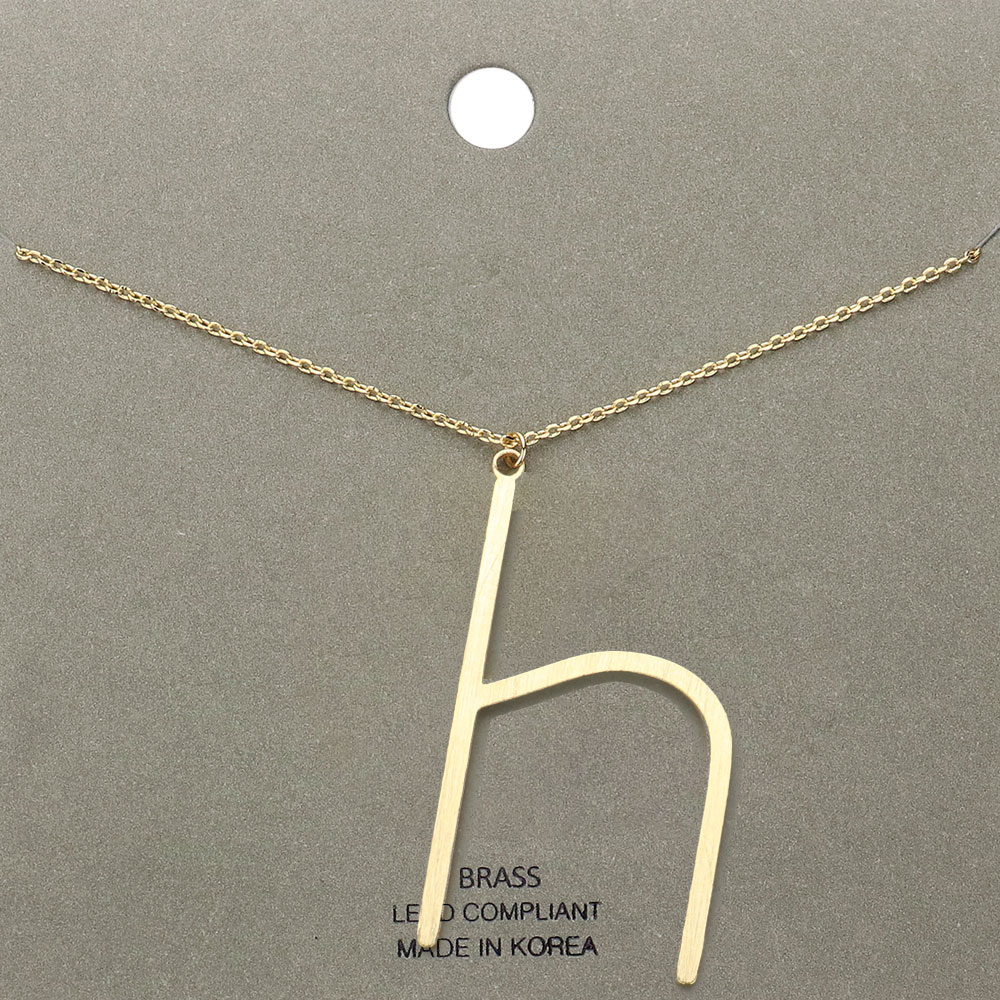 -H- Initial Monogram Brass Metal Pendant Necklace