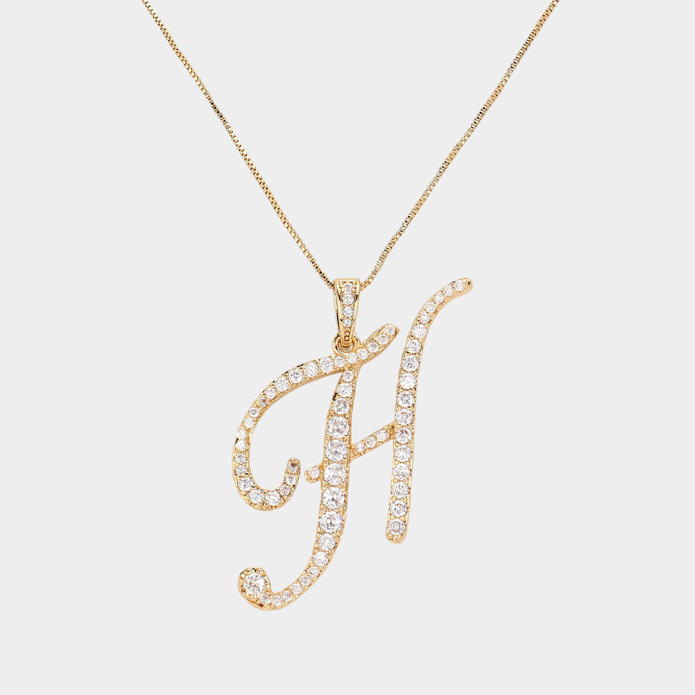 -N- Gold Dipped Initial Monogram Metal Pendant Necklace