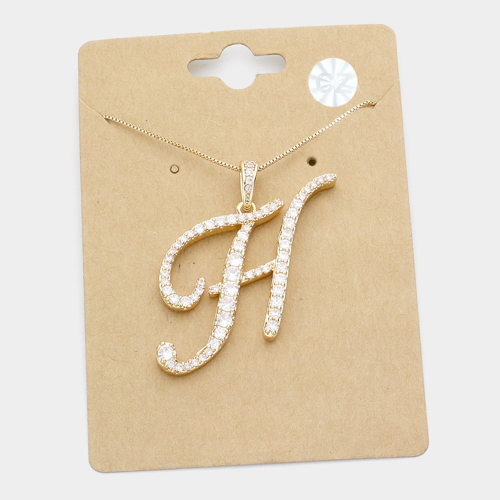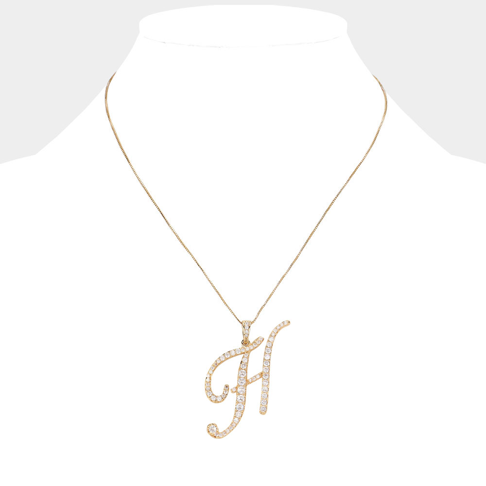 -Z- Stainless Steel CZ Stone Paved Initial Monogram Pendant Necklace