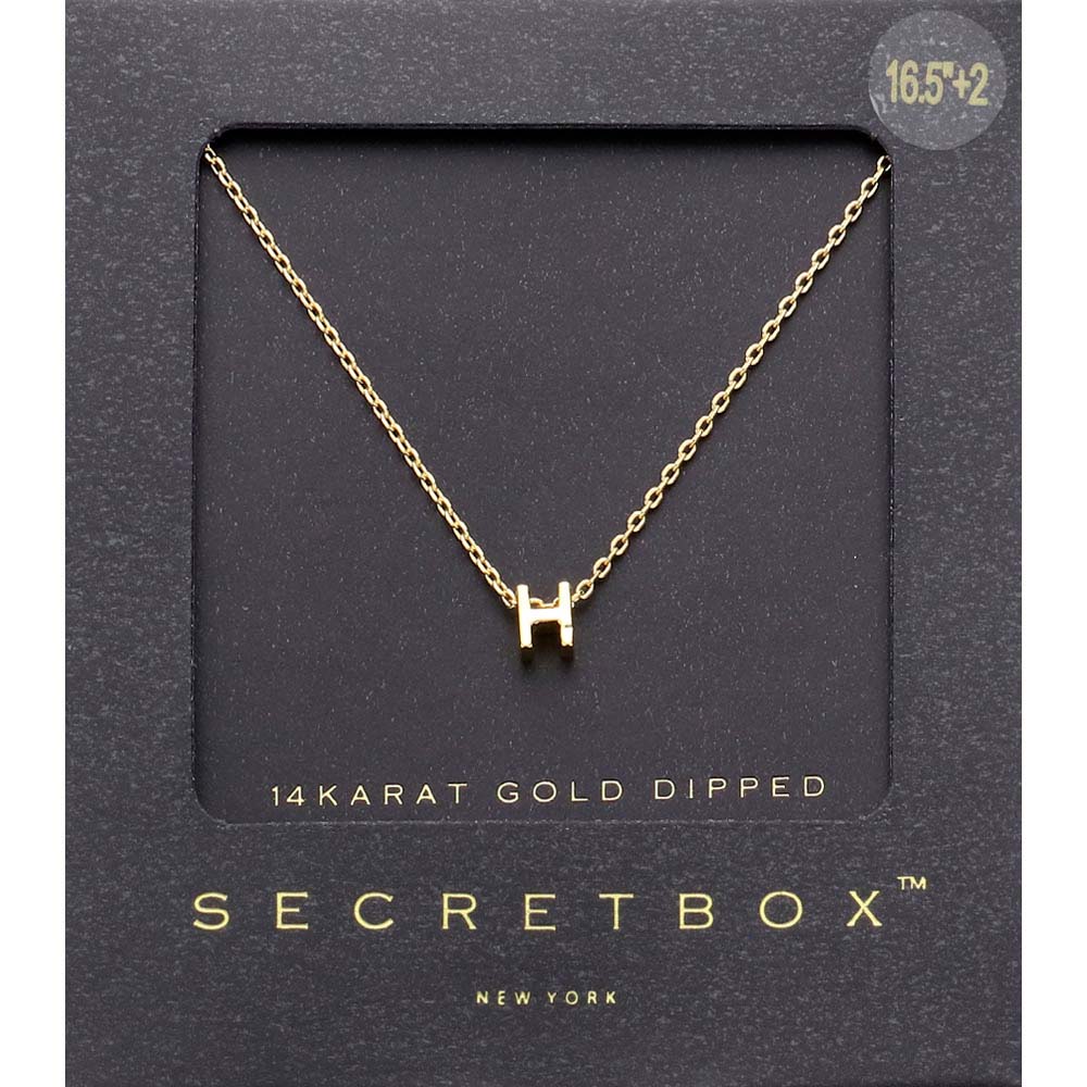 -H- Secret Box _ 14K Gold Dipped Initial Monogram Pendant Necklace