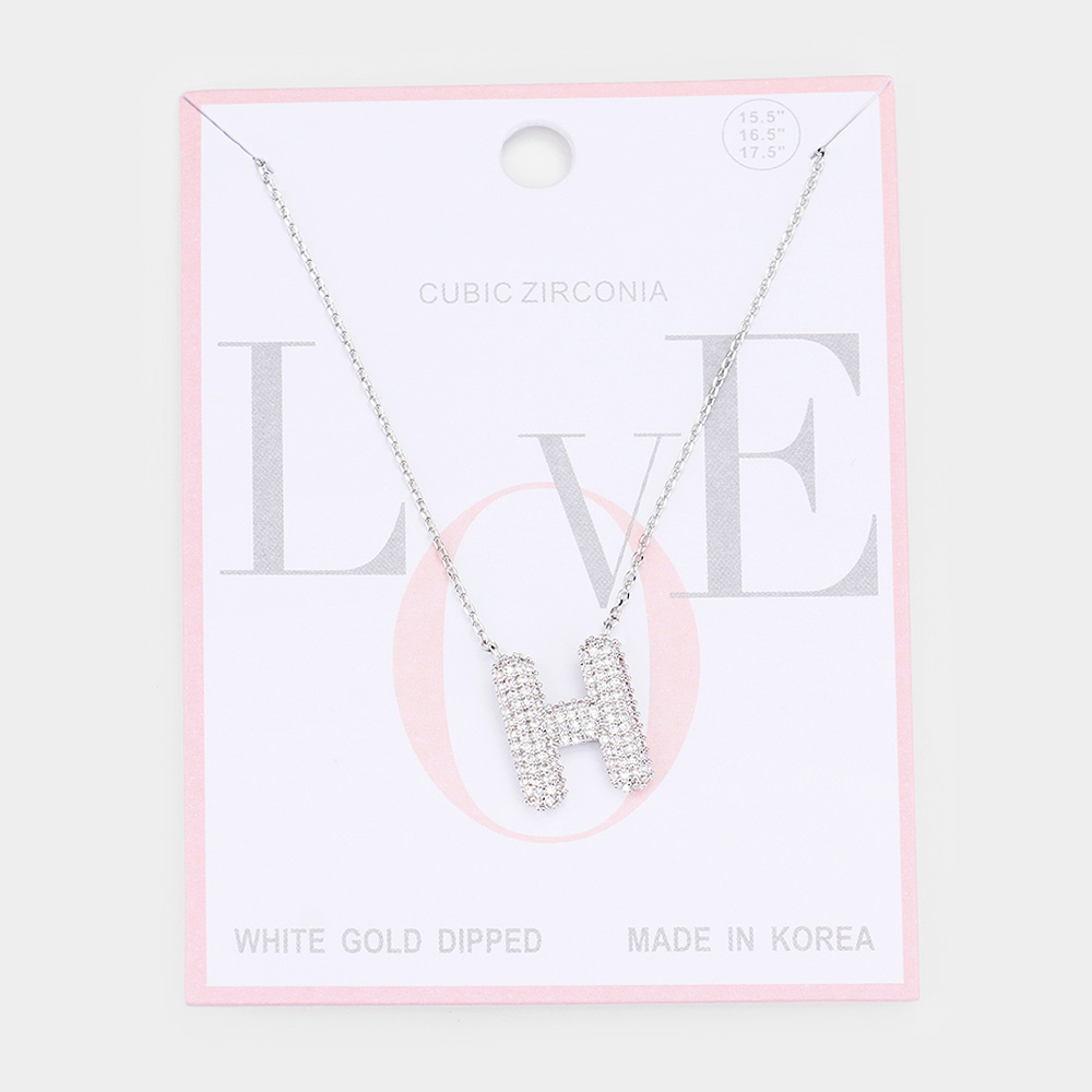 Details • Necklace Size : 15.5" + 2" L • Pendant Size : 0.6" X 0.65" • Letter H • Lead and Nickel Compliant • Made In Korea • Gold Dipped • CZ Cubic Zirconia