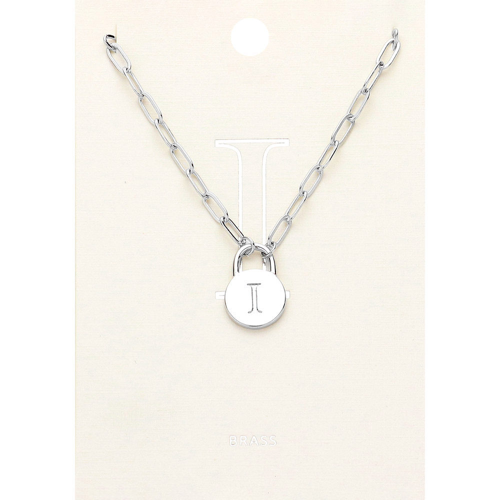 -J- Brass Metal Initial Monogram Lock Pendant Necklace