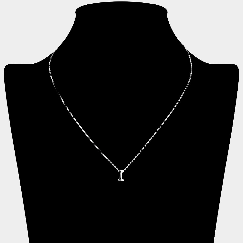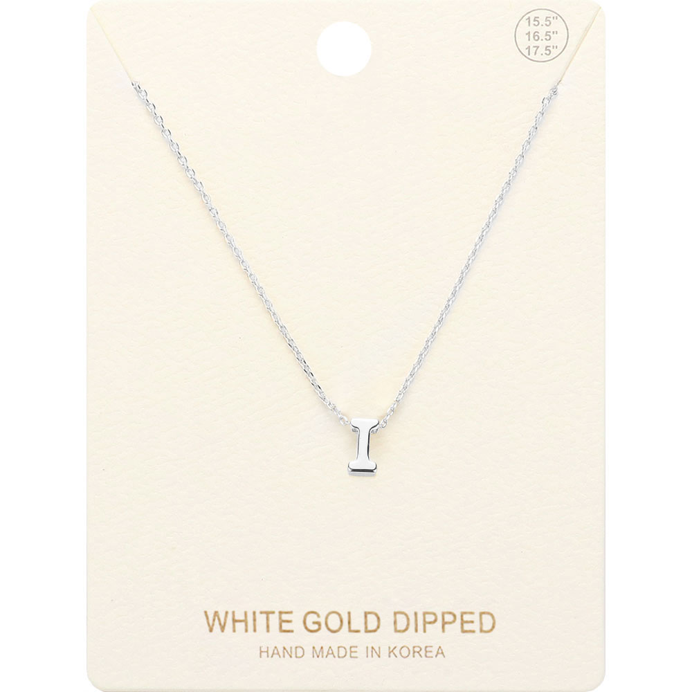-I- White Gold Dipped Initial Monogram Metal Pendant Necklace