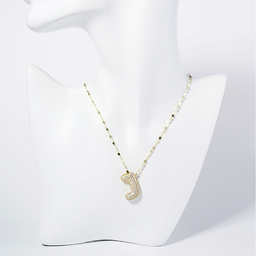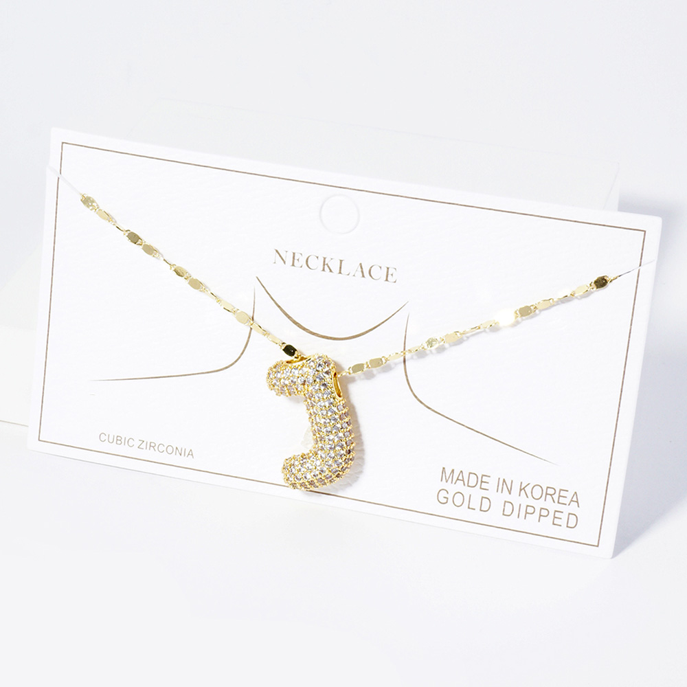 -J- Gold Dipped CZ Stone Paved Initial Monogram Pendant Necklace
