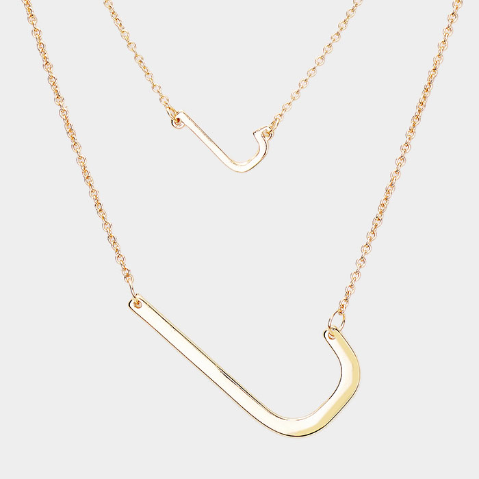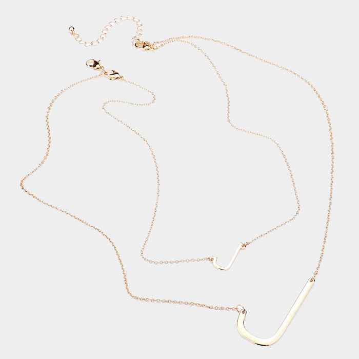 -J- Initial Monogram 2Row Strand Double Detachable Chain Necklace