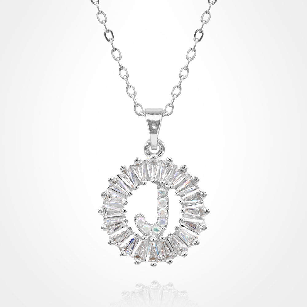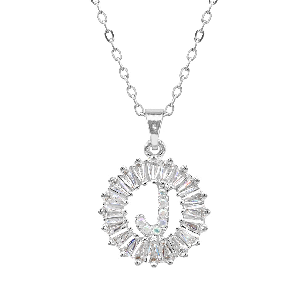 -J- Stainless Steel CZ Stone Embellished Round Initial Monogram Pendant Necklace -J- Stainless Steel CZ Stone Embellished Round Initial Monogram Pendant Necklace -J- Stainless Steel CZ Stone Embellished Round Initial Monogram Pendant Necklace