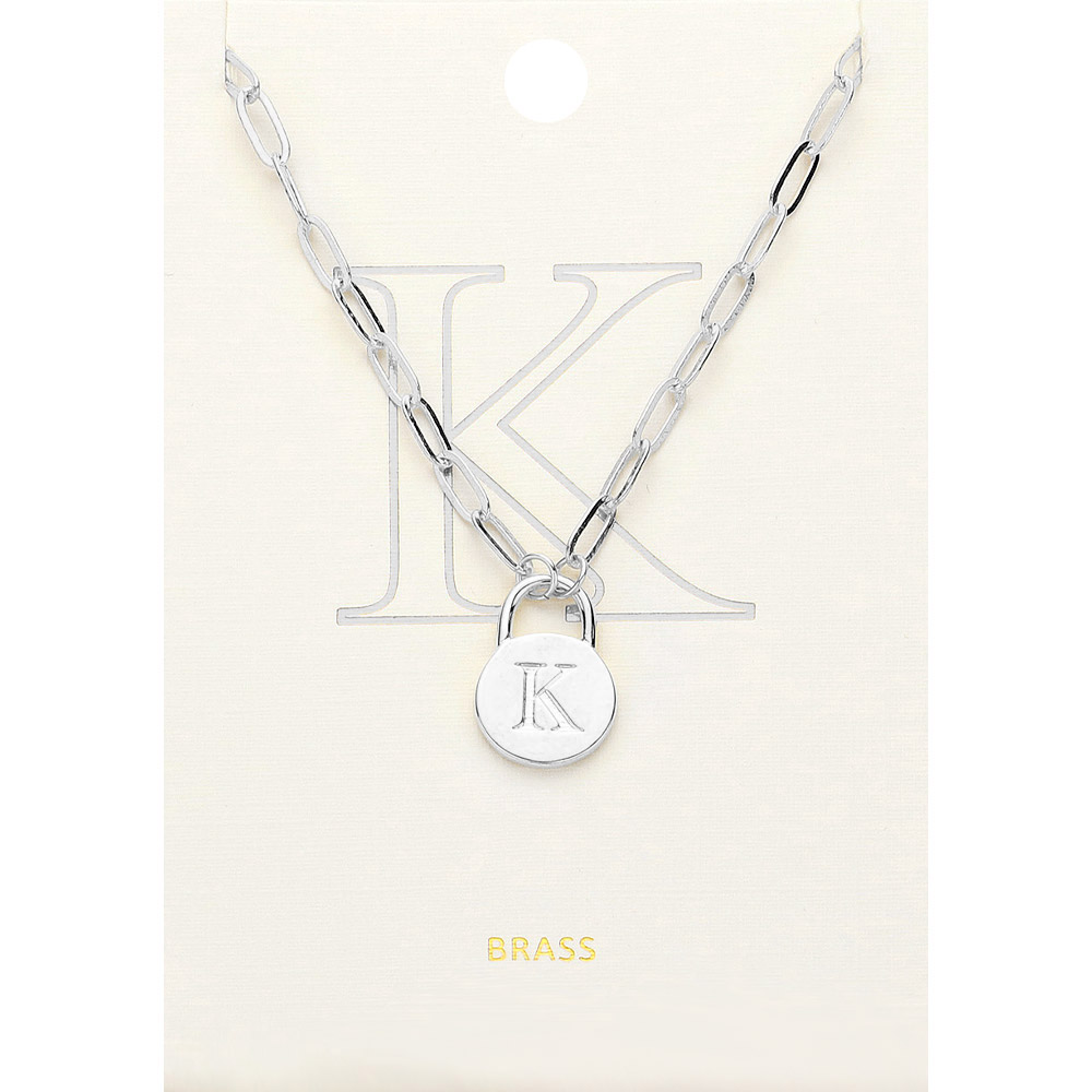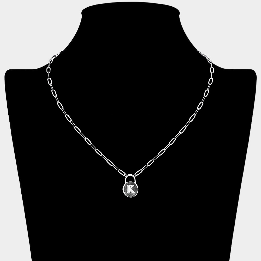 -W- Brass Metal Initial Monogram Lock Pendant Necklace