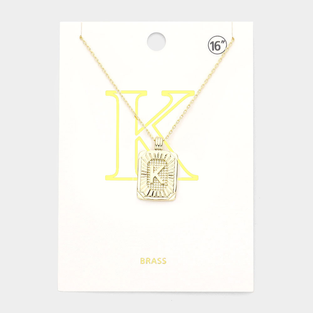 -A- Brass Metal Rectangle Initial Monogram Pendant Necklace
