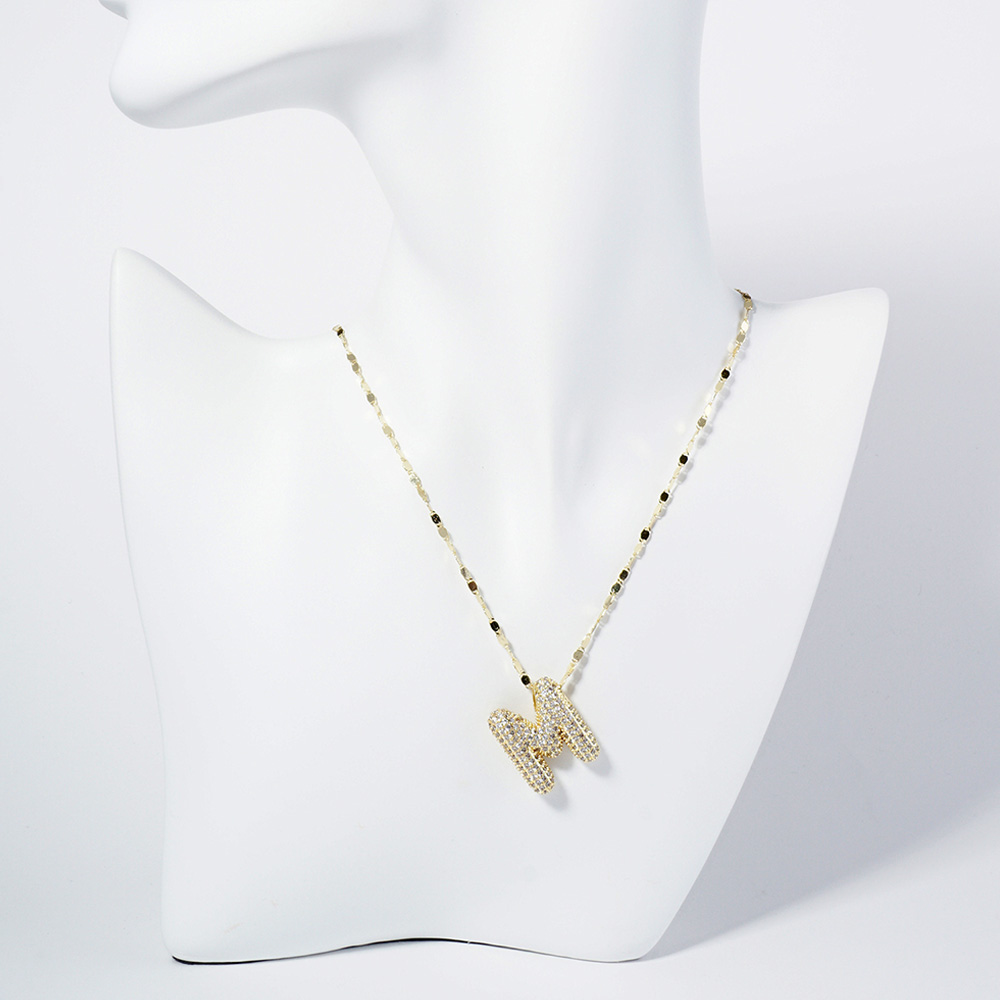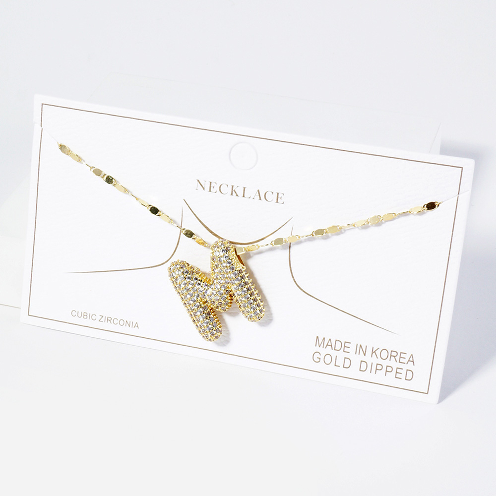 -M- Gold Dipped CZ Stone Paved Initial Monogram Pendant Necklace