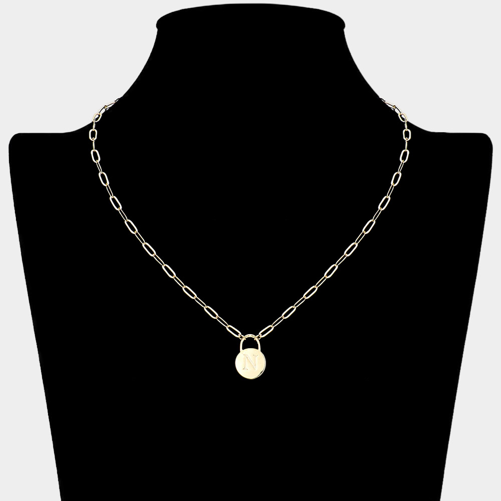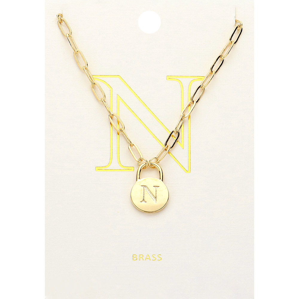 -A- Brass Metal Initial Monogram Lock Pendant Necklace