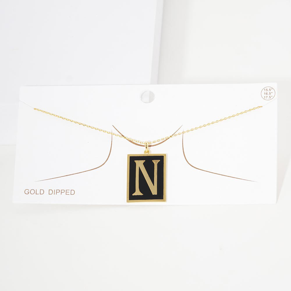 -J- Gold Dipped Enamel Rectangle Initial Monogram Pendant Necklace