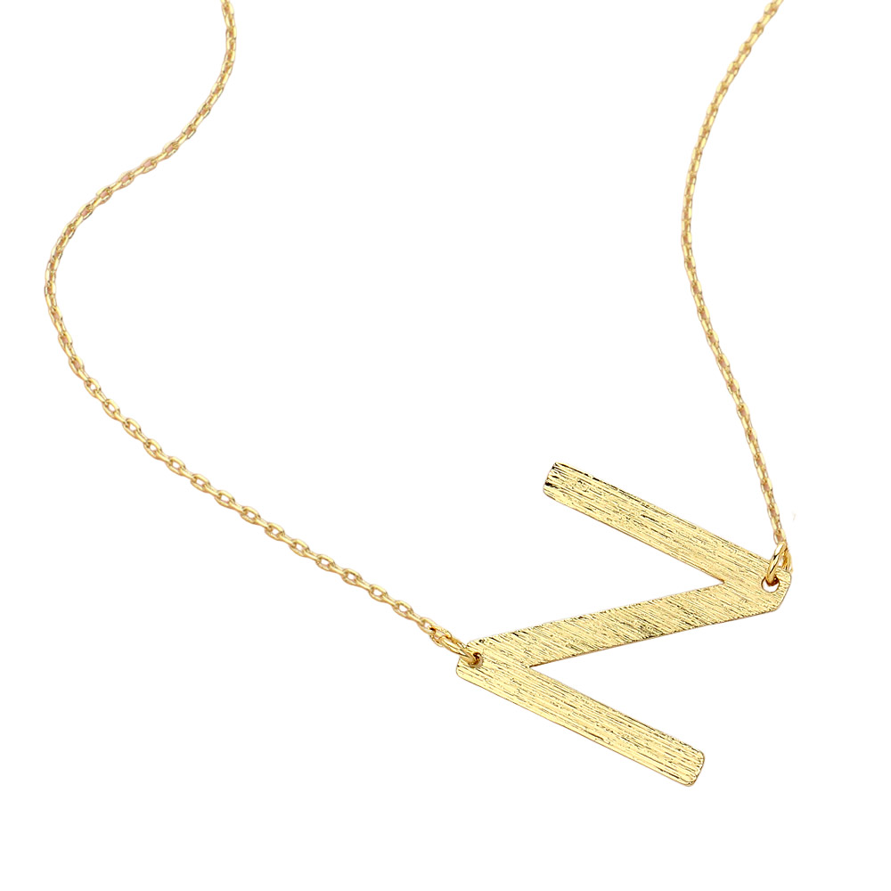 -M- White Gold Dipped Initial Monogram Pendant Necklace