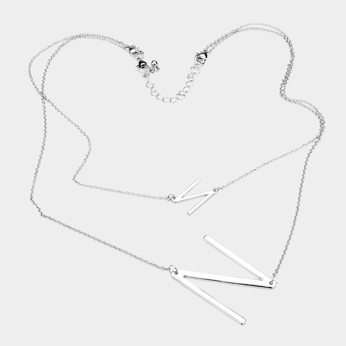 -N- Initial Monogram 2Row Strand Double Detachable Chain Necklace