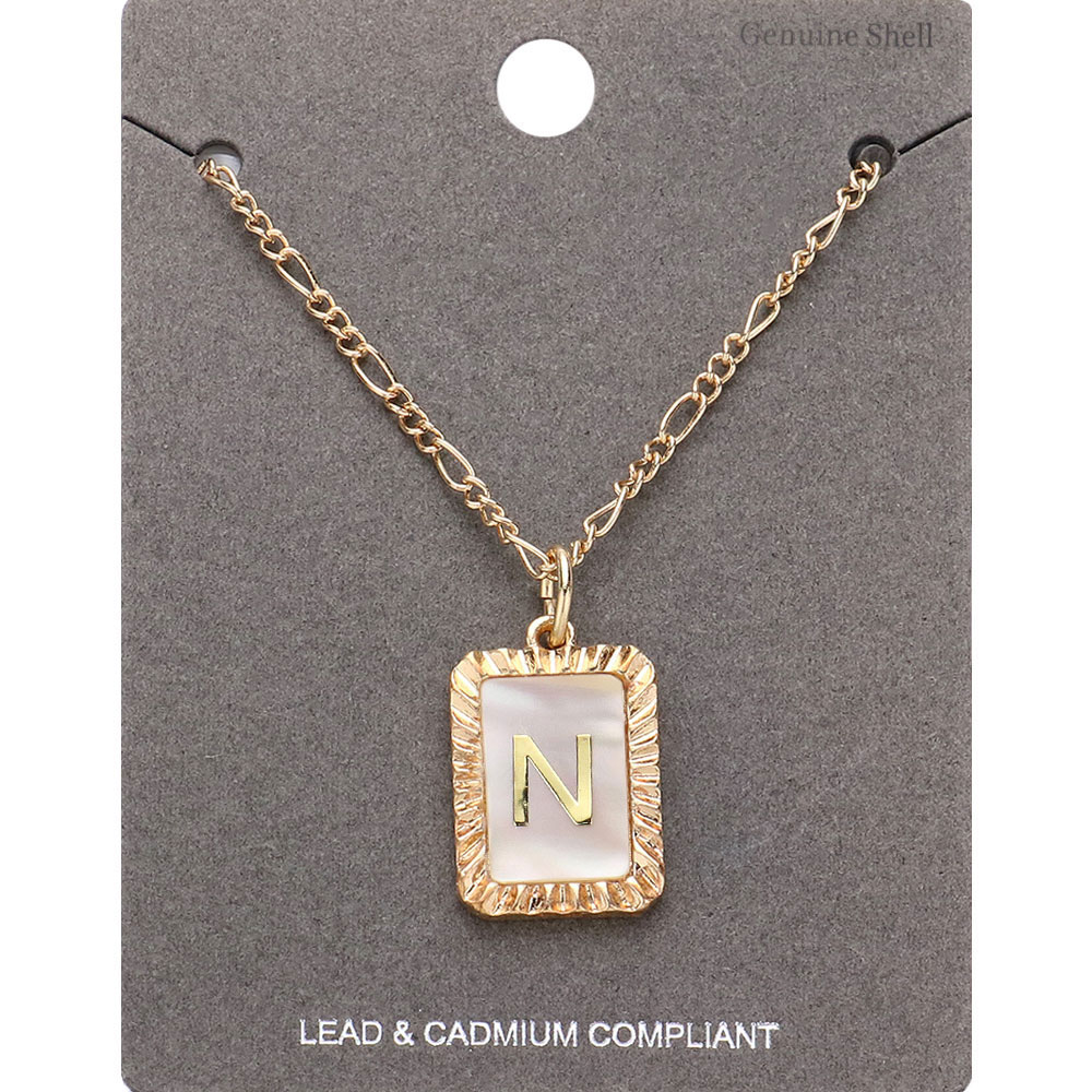 -N- Initial Monogram Genuine Shell Rectangle Pendant Necklace