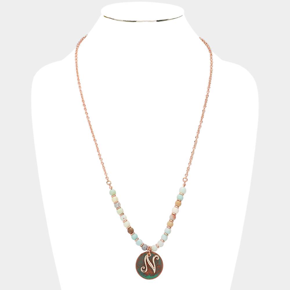 -N- Initial Monogram Pendant Natural Stone Long Necklace