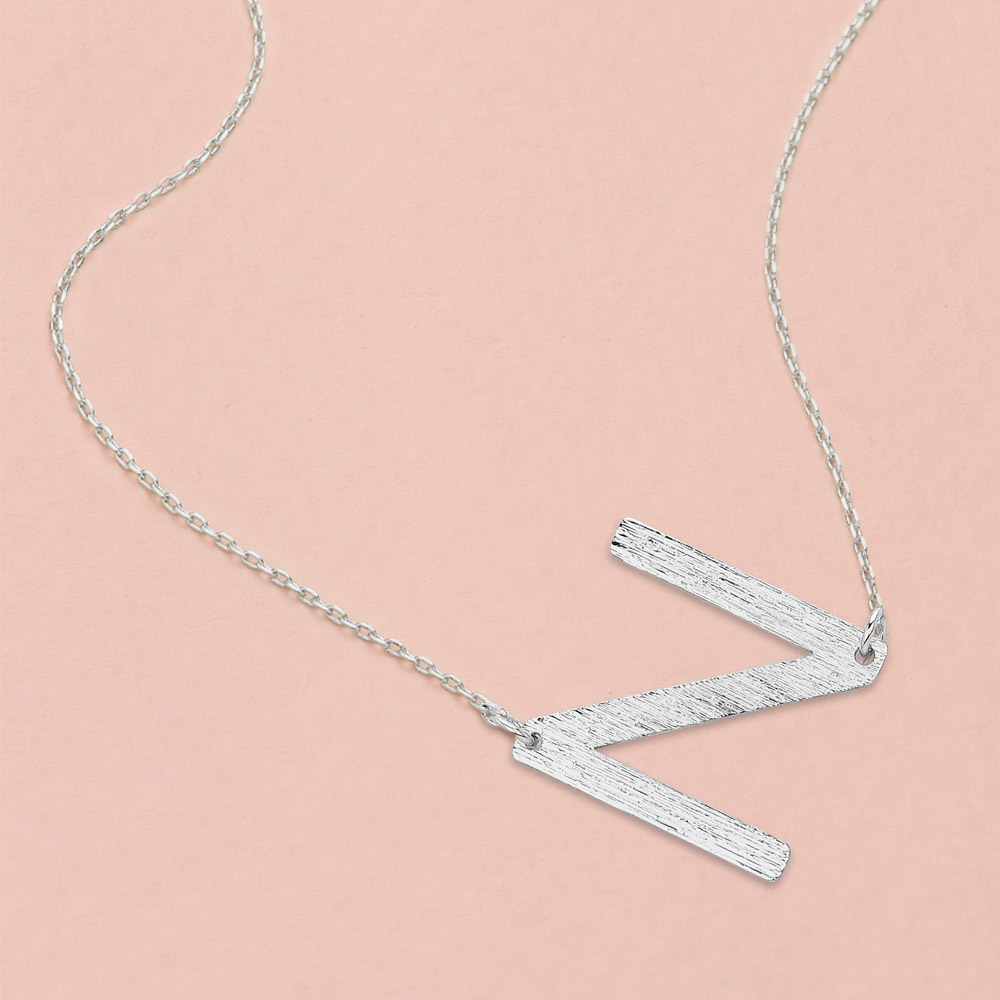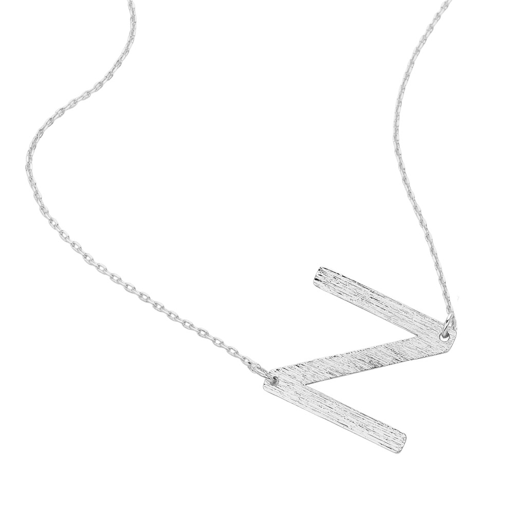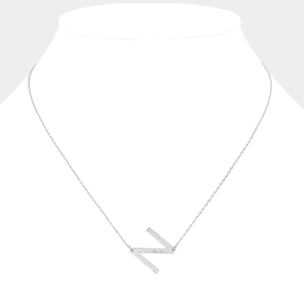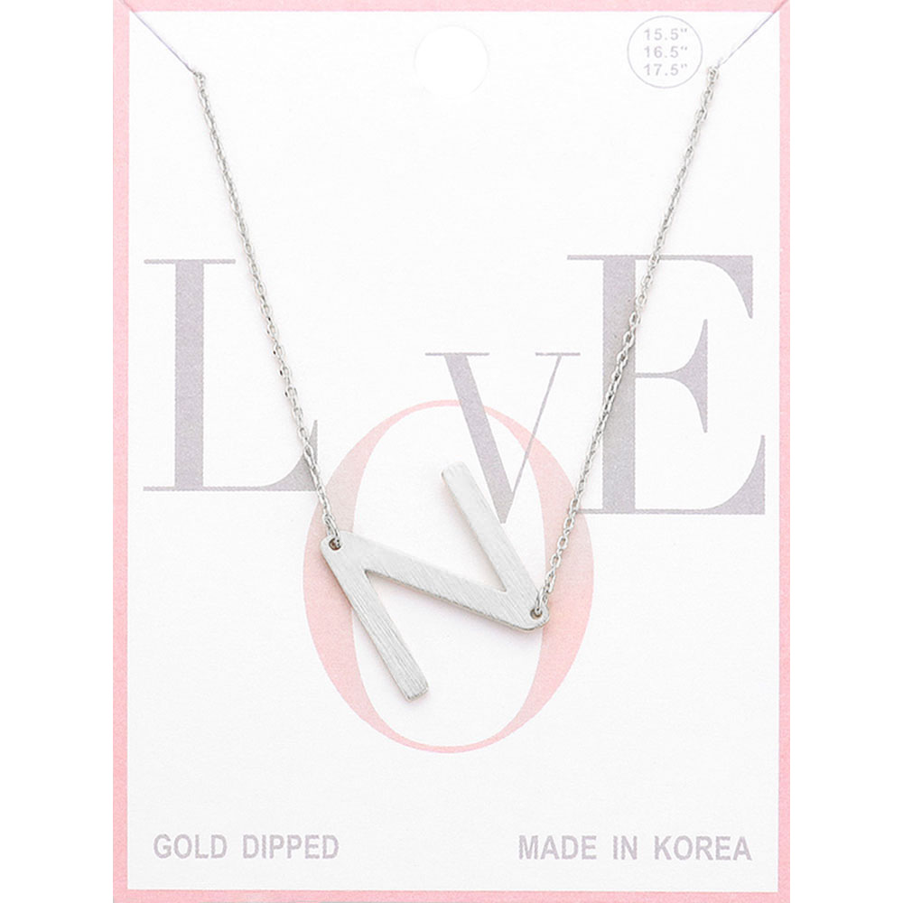 -N- White Gold Dipped Initial Monogram Pendant Necklace
