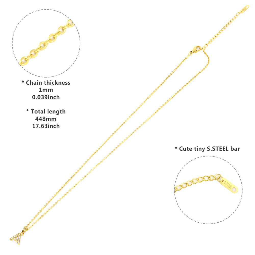 -A- Stainless Steel CZ Stone Paved Initial Monogram Pendant Necklace