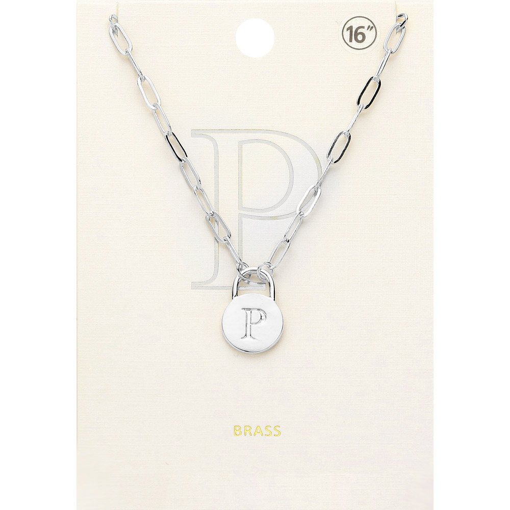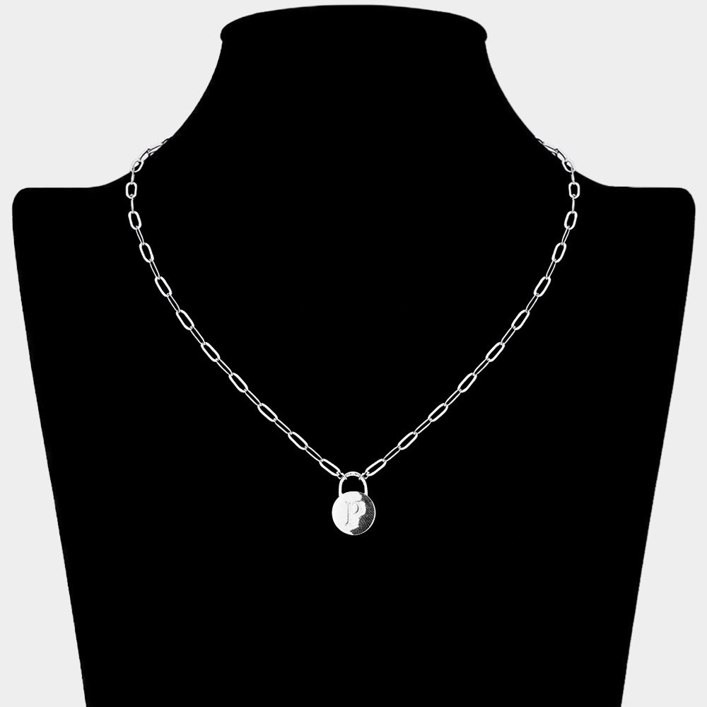 -W- Brass Metal Initial Monogram Lock Pendant Necklace