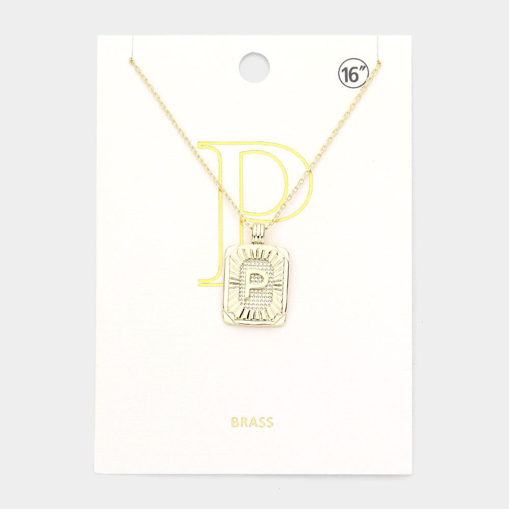 -A- Brass Metal Rectangle Initial Monogram Pendant Necklace
