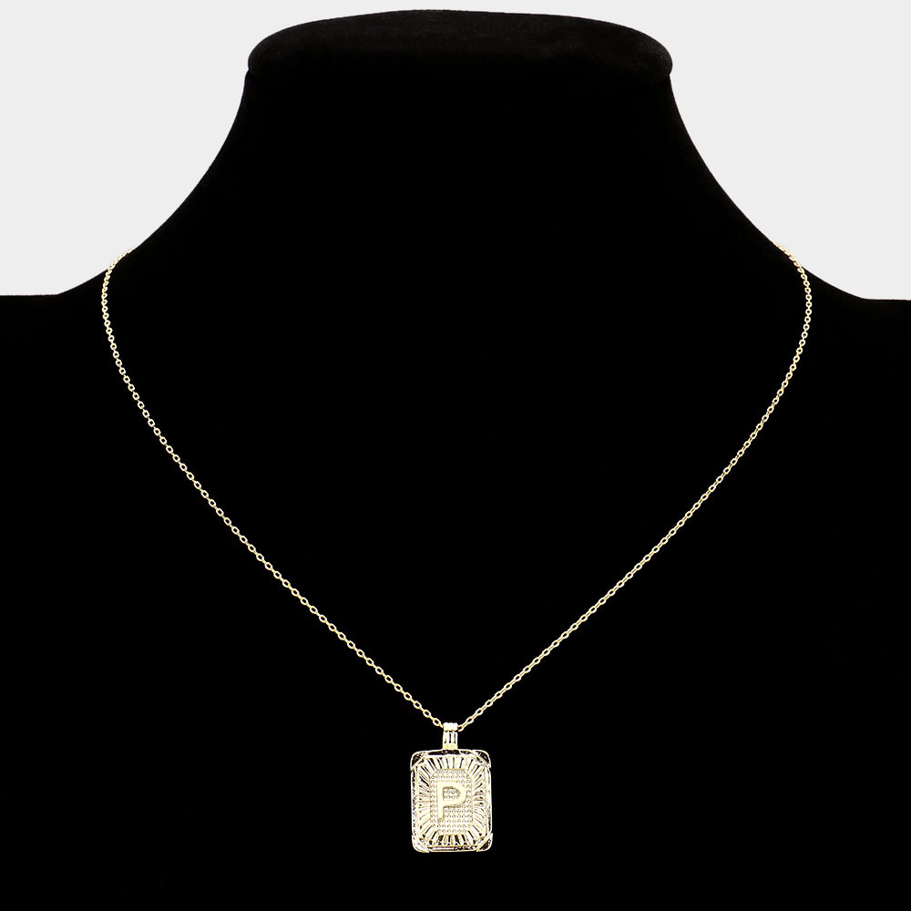-X- Brass Metal Rectangle Initial Monogram Pendant Necklace