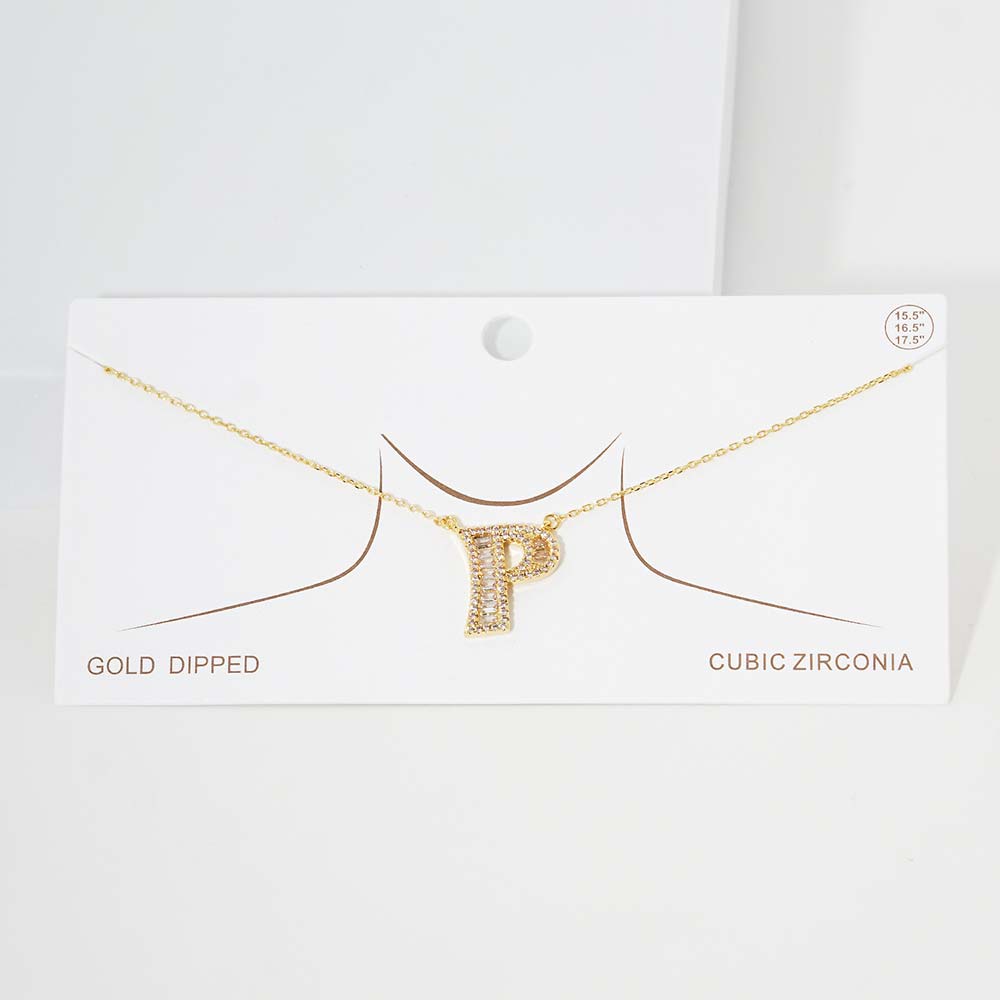 -P- CZ Initial Monogram Pendant Necklace
