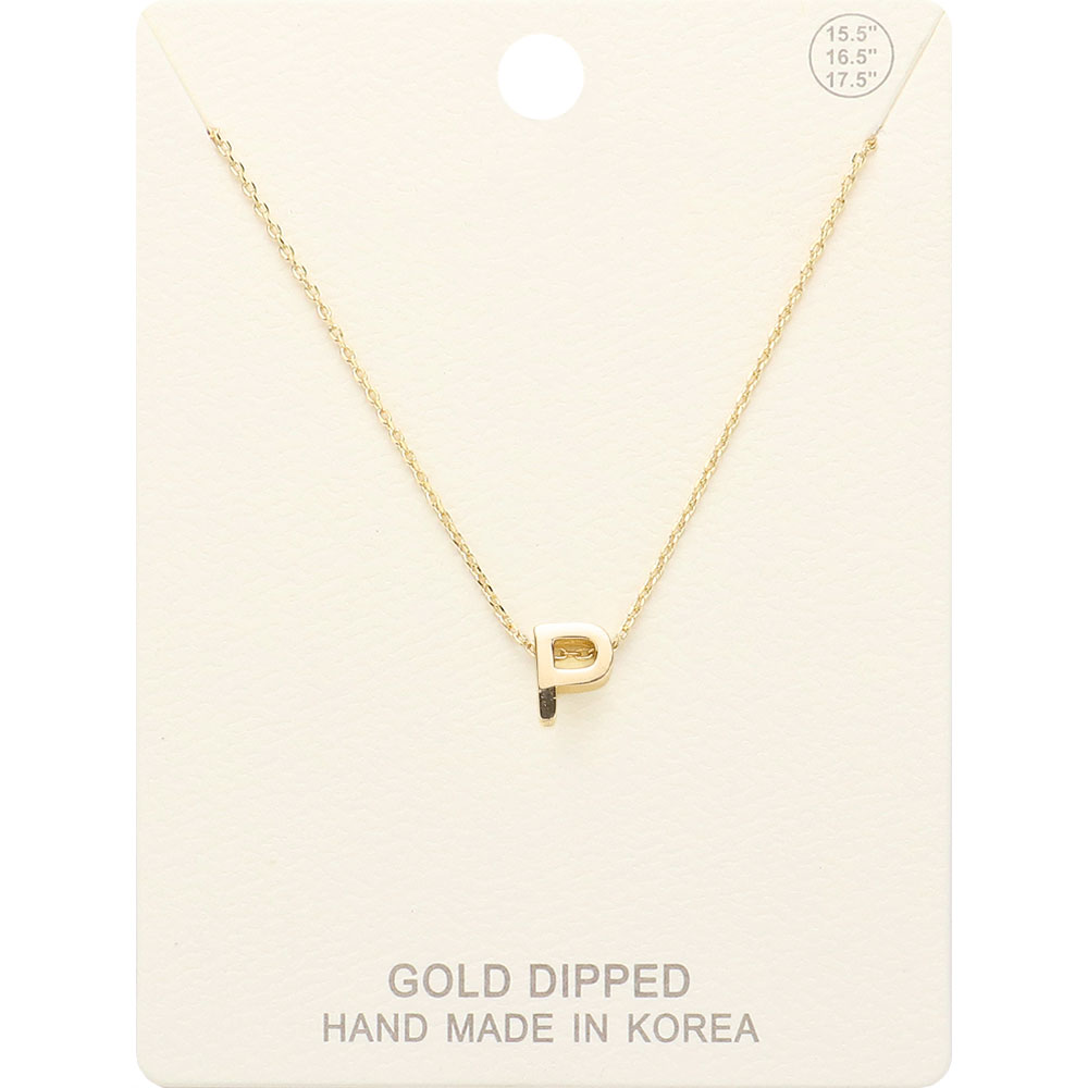 -P- Gold Dipped Initial Monogram Metal Pendant Necklace