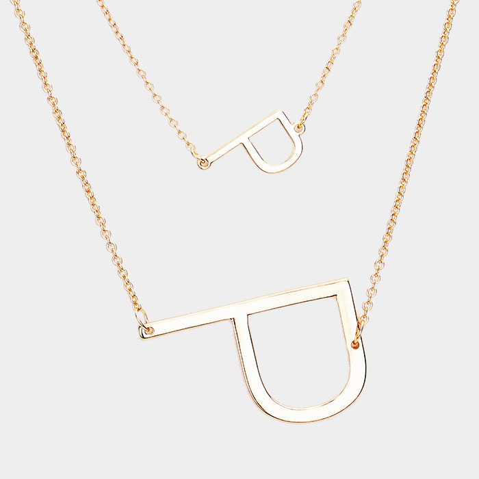 -B- Initial Monogram 2Row Strand Double Detachable Chain Necklace