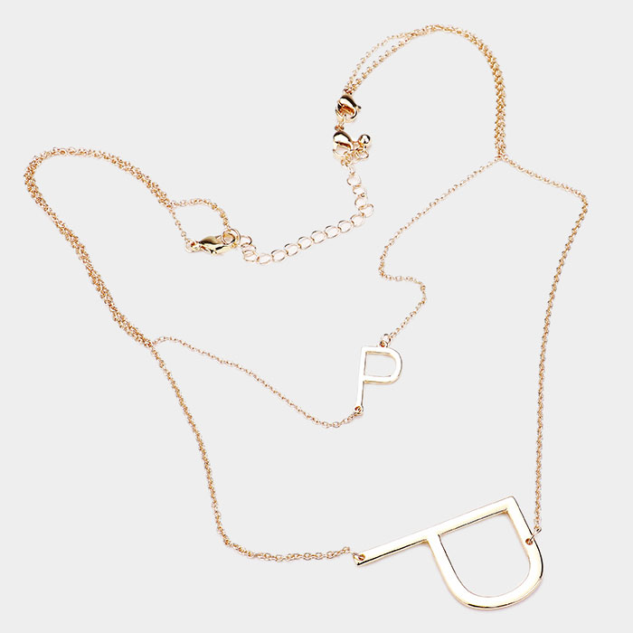 -P- Initial Monogram 2Row Strand Double Detachable Chain Necklace
