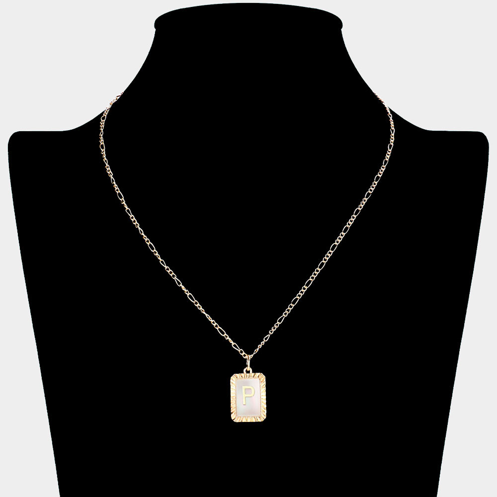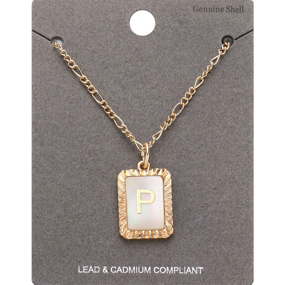 -P- Initial Monogram Genuine Shell Rectangle Pendant Necklace