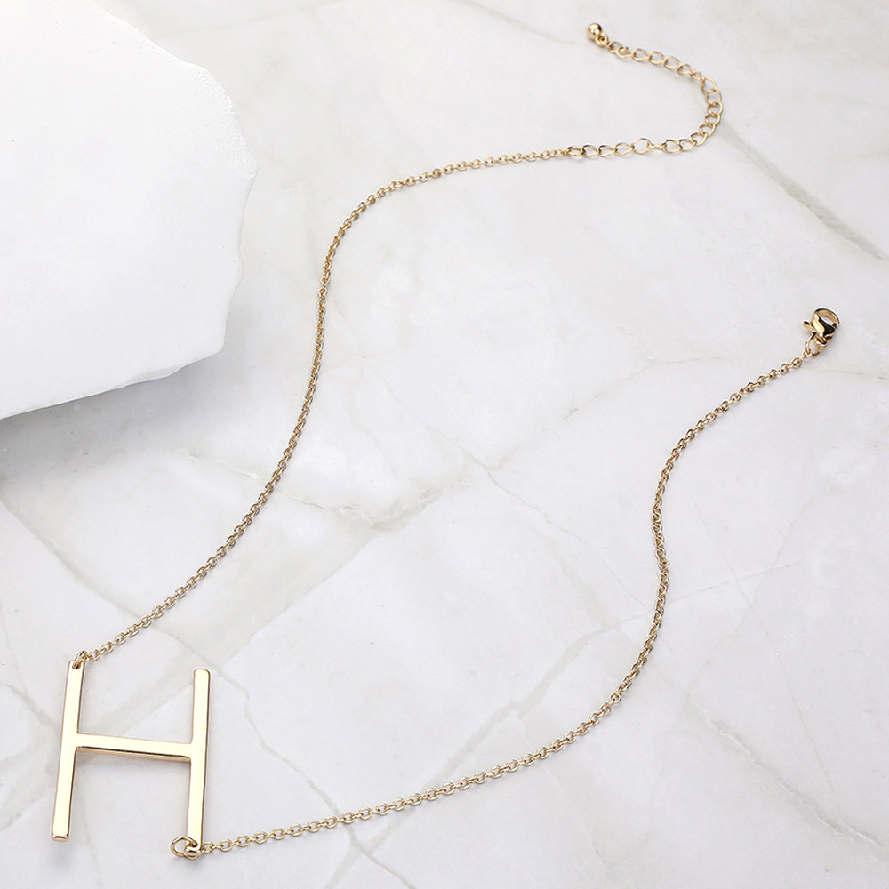 -P- Metal Initial Monogram Pendant Necklace