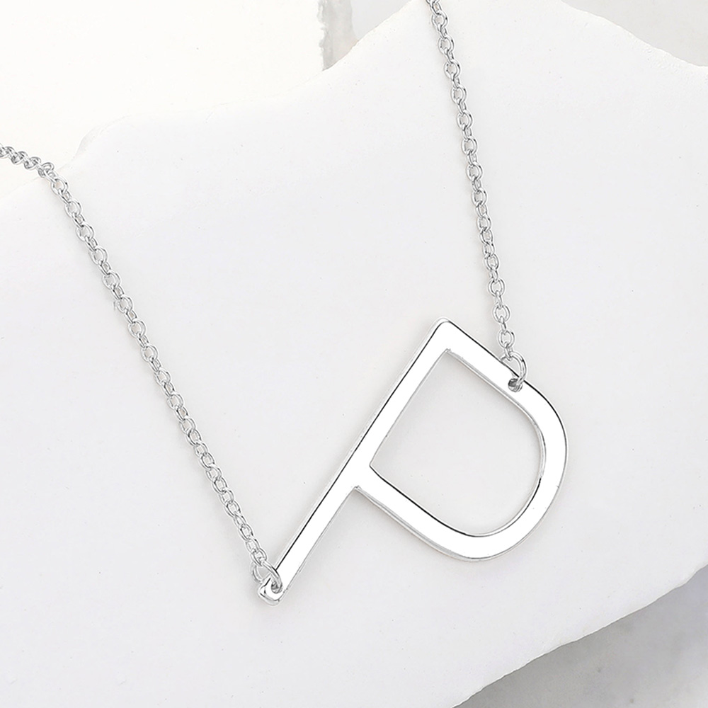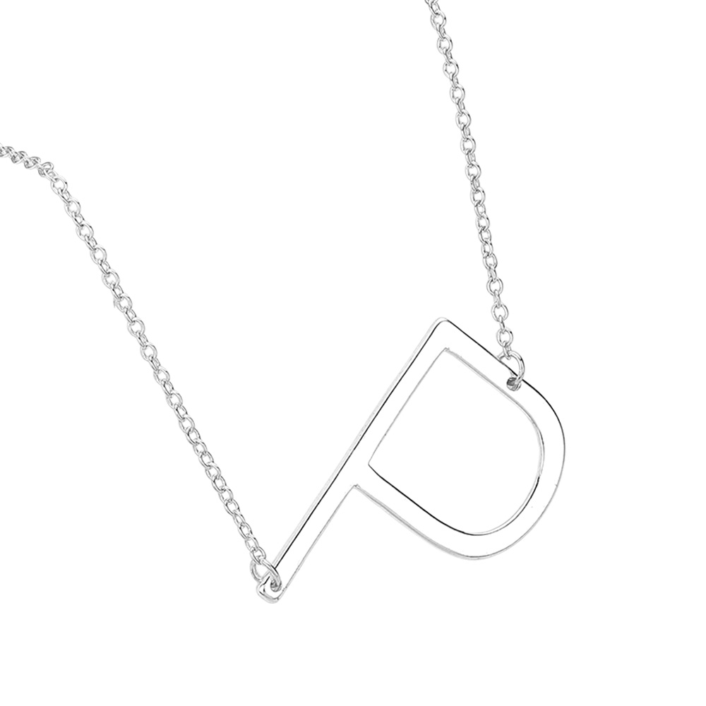 -L- Brass Metal Initial Monogram Lock Pendant Necklace