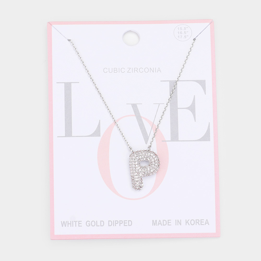 Details • Necklace Size : 15.5" + 2" L • Pendant Size : 0.6" X 0.65" • Letter P • Lead and Nickel Compliant • Made In Korea • Gold Dipped • CZ Cubic Zirconia
