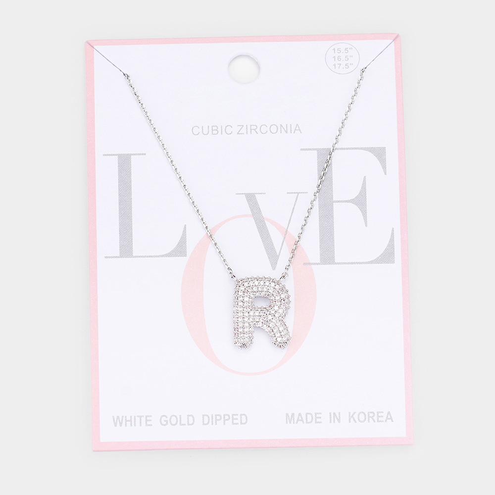 -P- Gold Dipped CZ Initial Monogram Pendant Necklace
