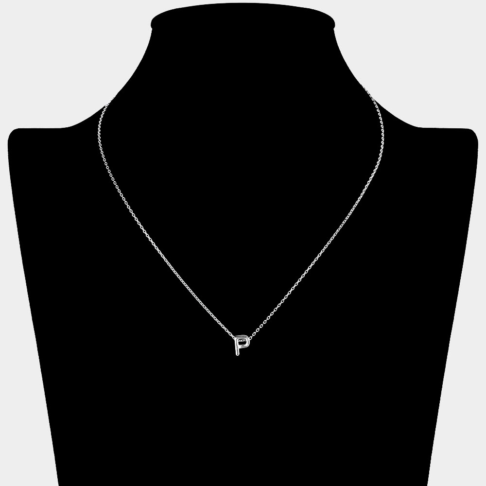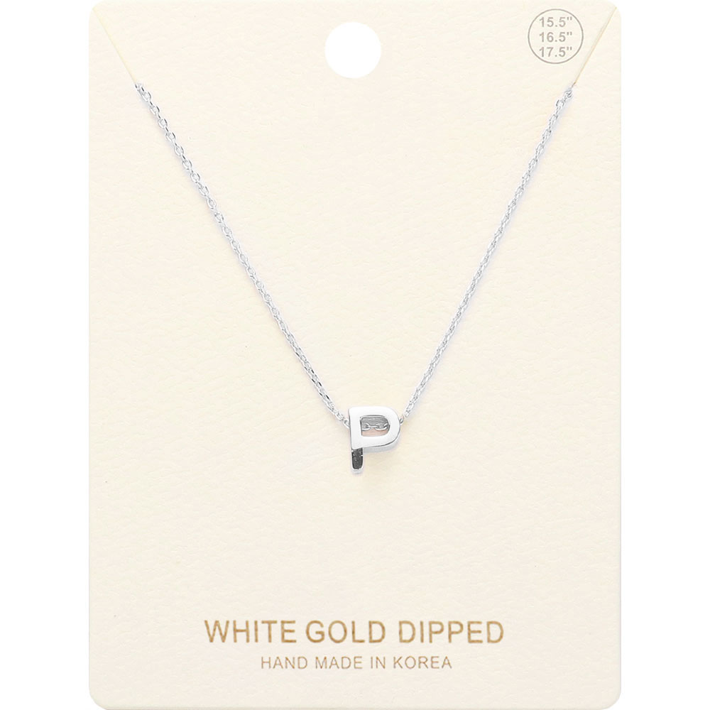 -P- White Gold Dipped Initial Monogram Metal Pendant Necklace
