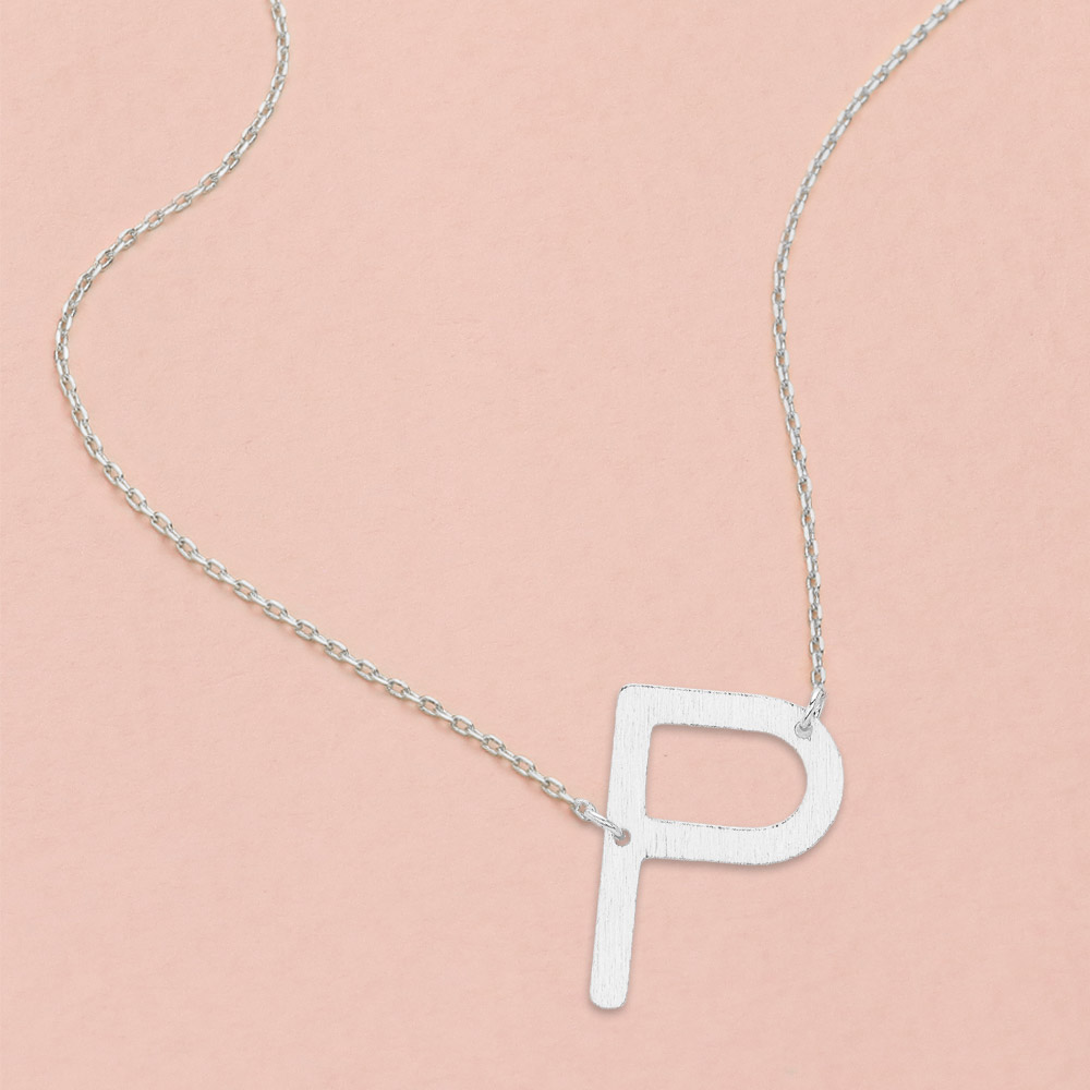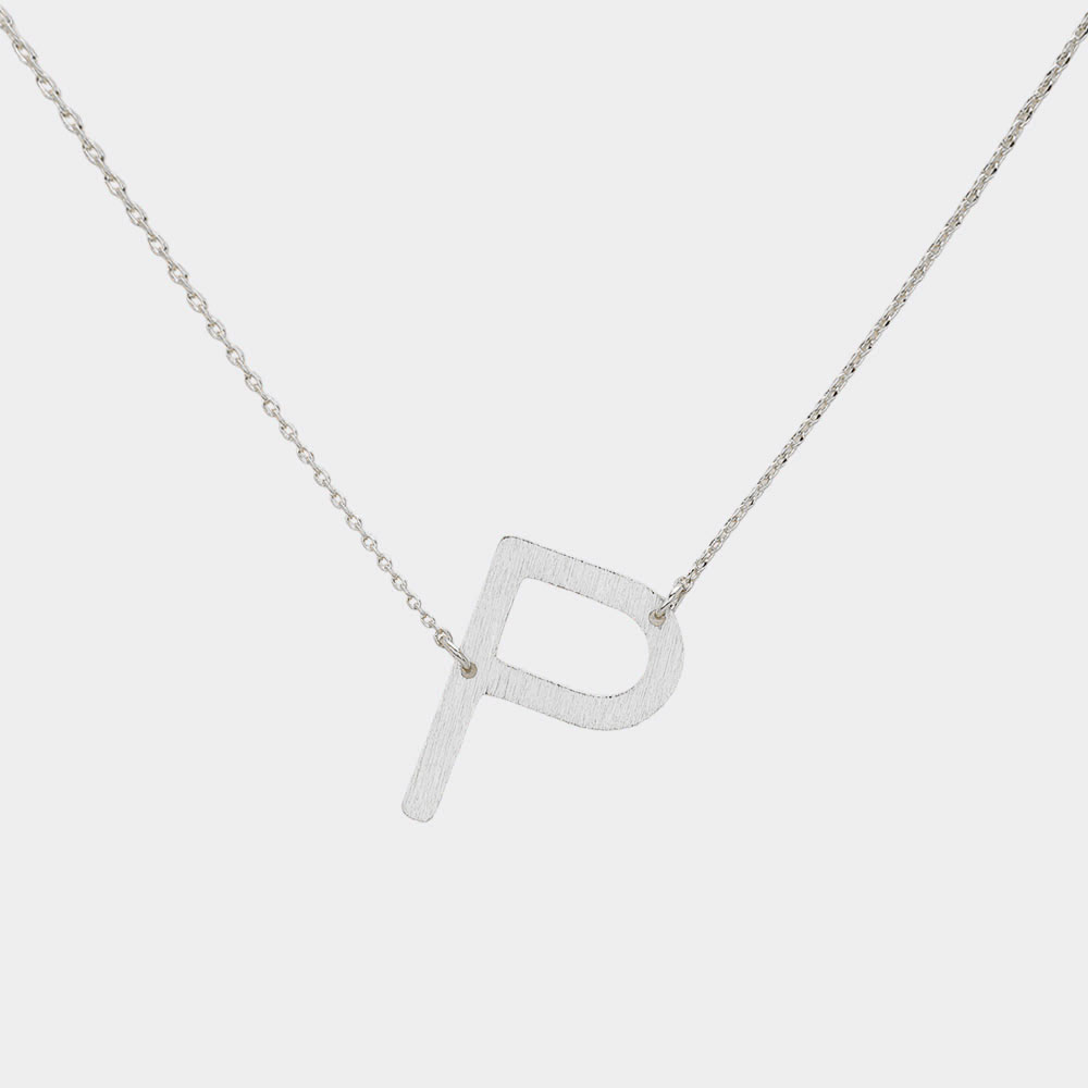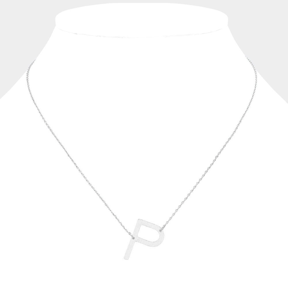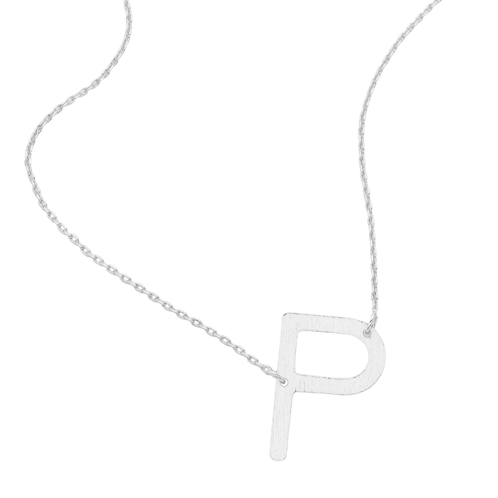 -P- White Gold Dipped Initial Monogram Pendant Necklace