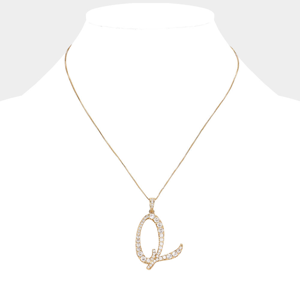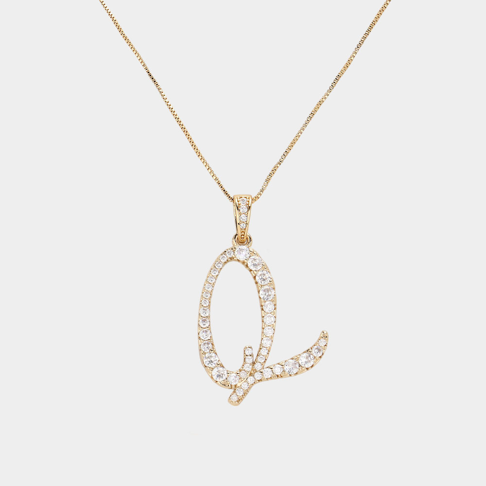 -Q- CZ Initial Monogram Pendant Necklace