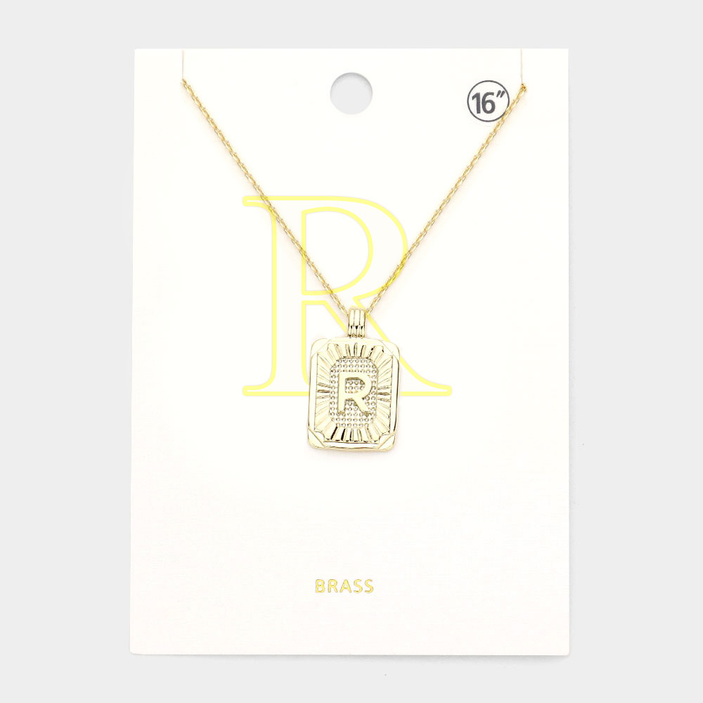 -A- Brass Metal Rectangle Initial Monogram Pendant Necklace